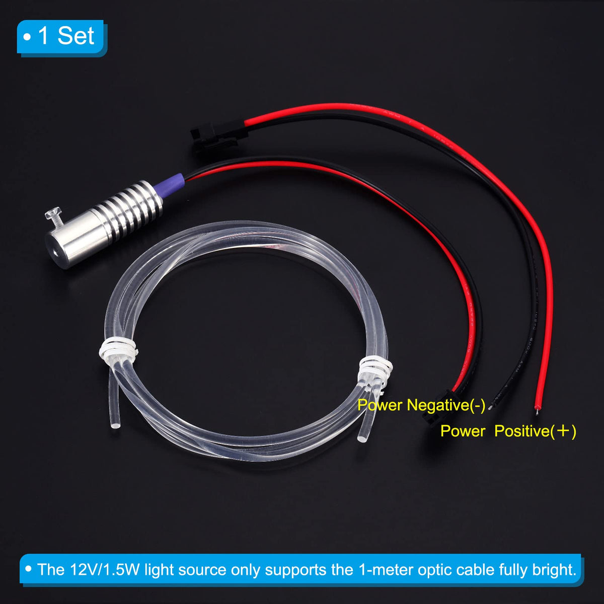 Q: What type of light source does the PATIKIL fiber optic cable use?A: The PATIKIL fiber optic cable kit uses a constant light source with an LED light that operates at twelve volts and one point five watts.