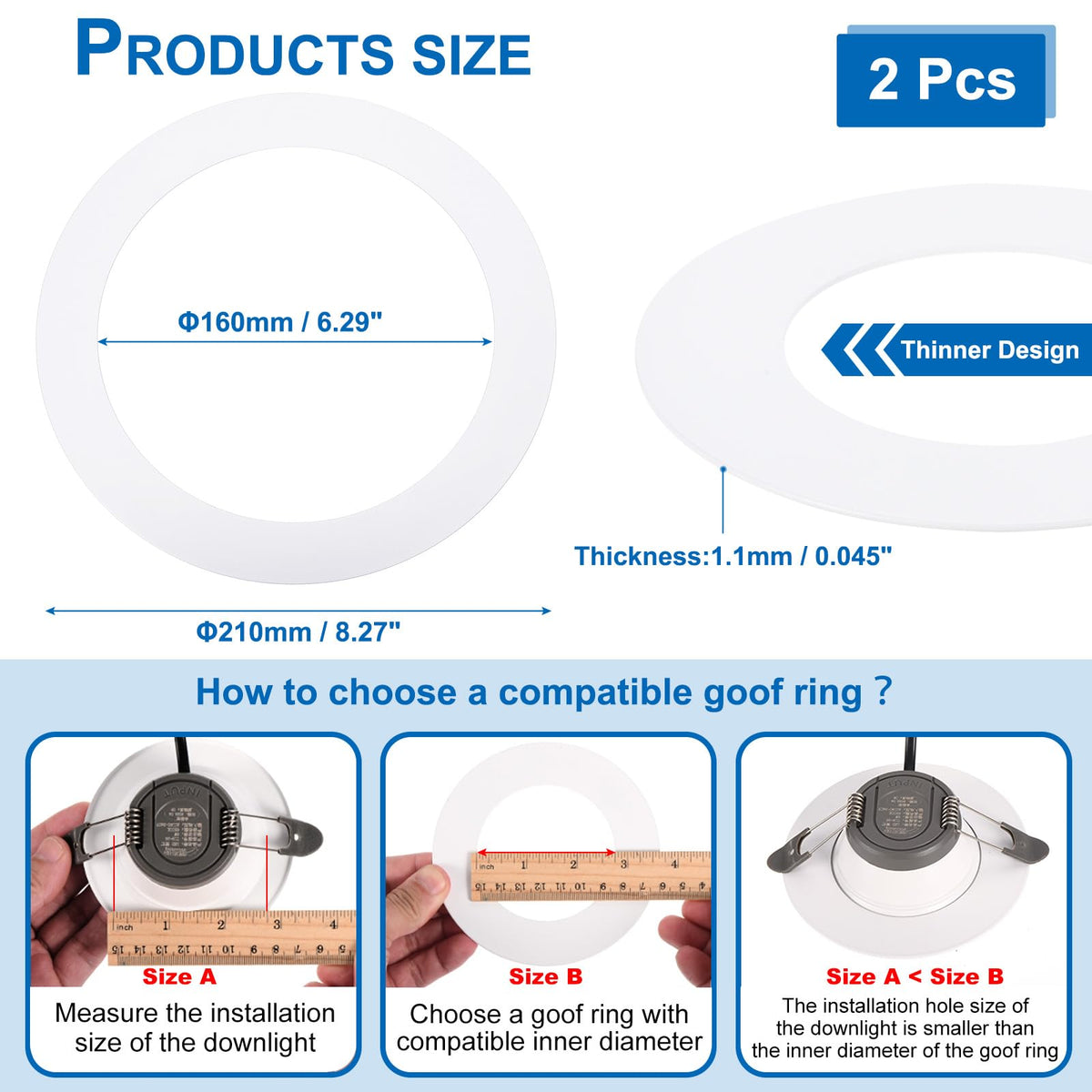 Patikil Metal Goof Trim Ring, 2 Pcs 8.27'' Od 6.3'' Id Circular Ceiling Light Trims Ring Recessed Light Cover Ring For Recessed
