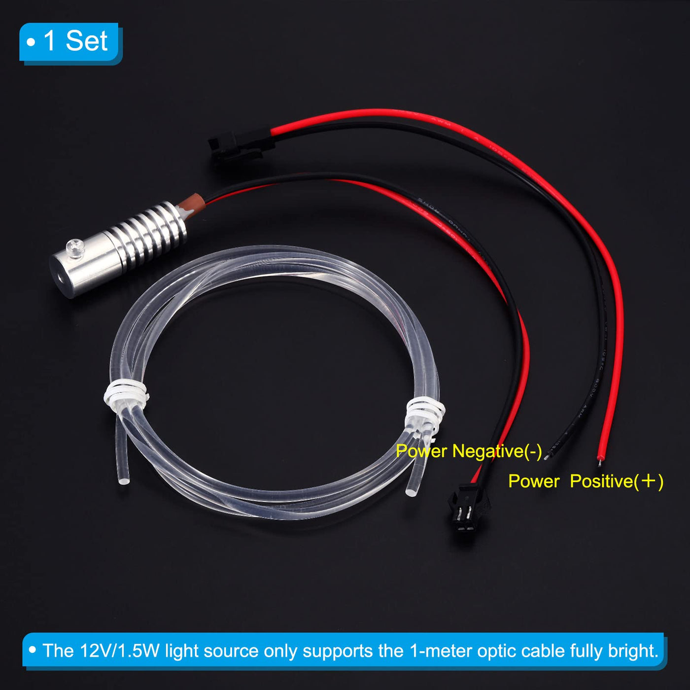 Using this lighting kit is straightforward; simply insert the fiber cable into the LED light head for quick setup. It is important to note that the 12V/1.5W light source is optimized for the 1-meter optic cable to achieve full brightness. Additionally, ensure the LED light is placed in an open area to facilitate proper cooling, as the aluminum shell may become warm during operation.