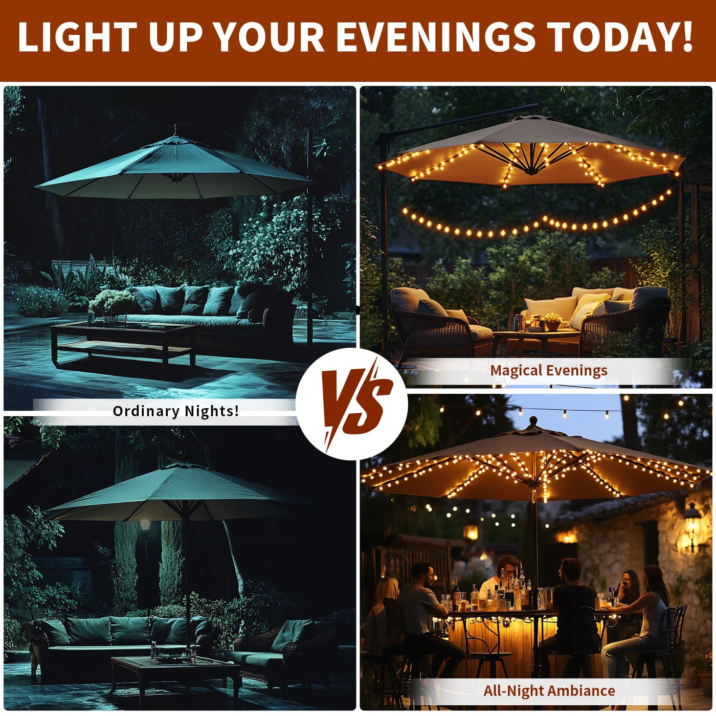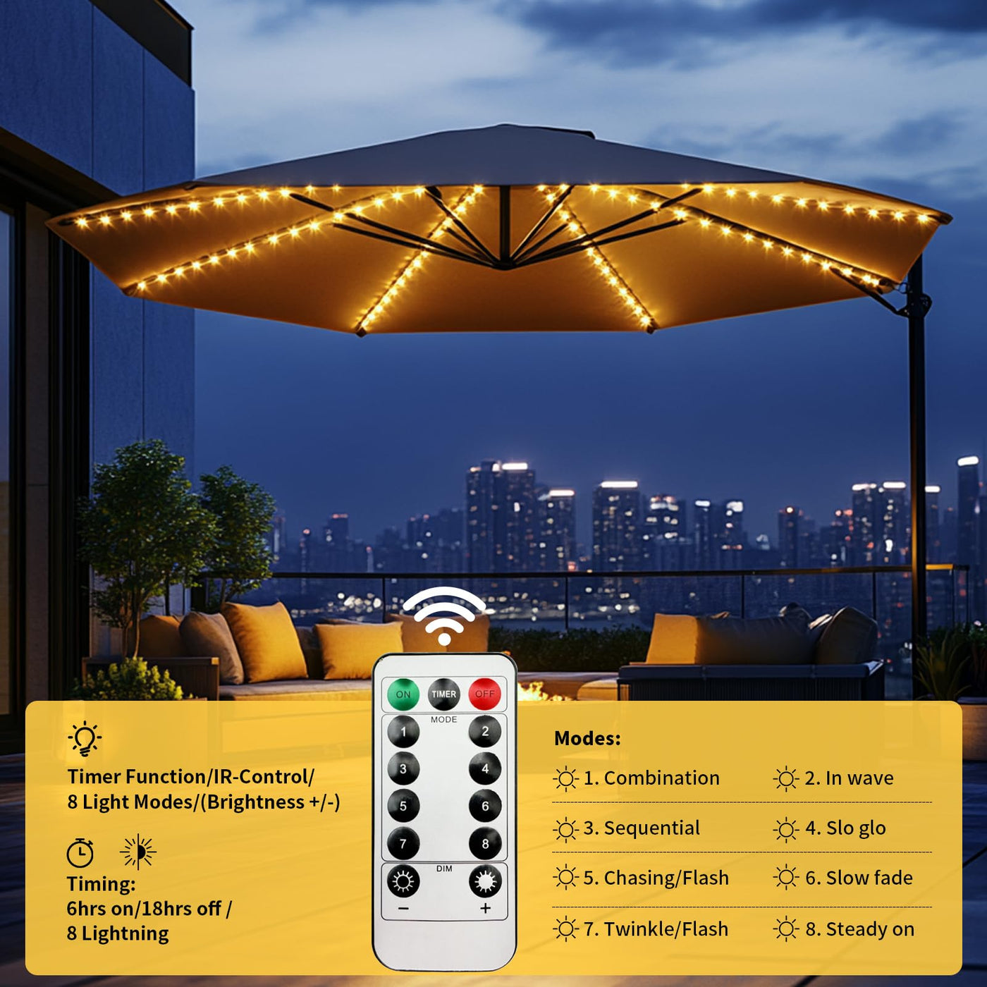 Patio Umbrella Lights 120 LED Cordless Lights for Outdoor Umbrella with Remote Control Battery Operated Parasol Ambient Lighting