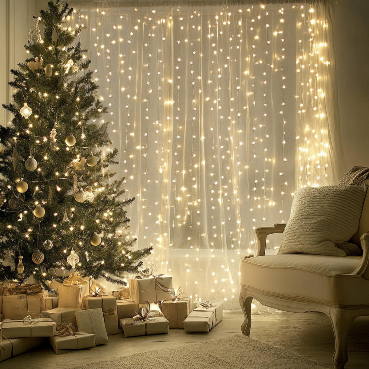 Patioman Fairy Curtain Lights, 200 LED Upgraded Tangle-Free Hanging Lights with Remote, USB Plug in String Lights for Bedroom Wall Window Wedding Party Xmas Home D cor - 9.8 x 6.6 Ft, Warm White