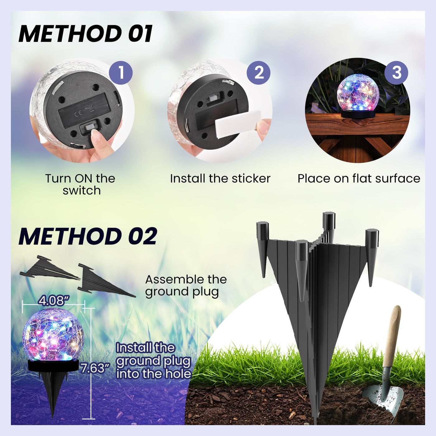 Solar Lights Outdoor Waterproof Garden Decor, Cracked Glass Solar Globe Lights Outdoor Decorations For Patio Yard Backyard Deck And Porch Balcony Decor