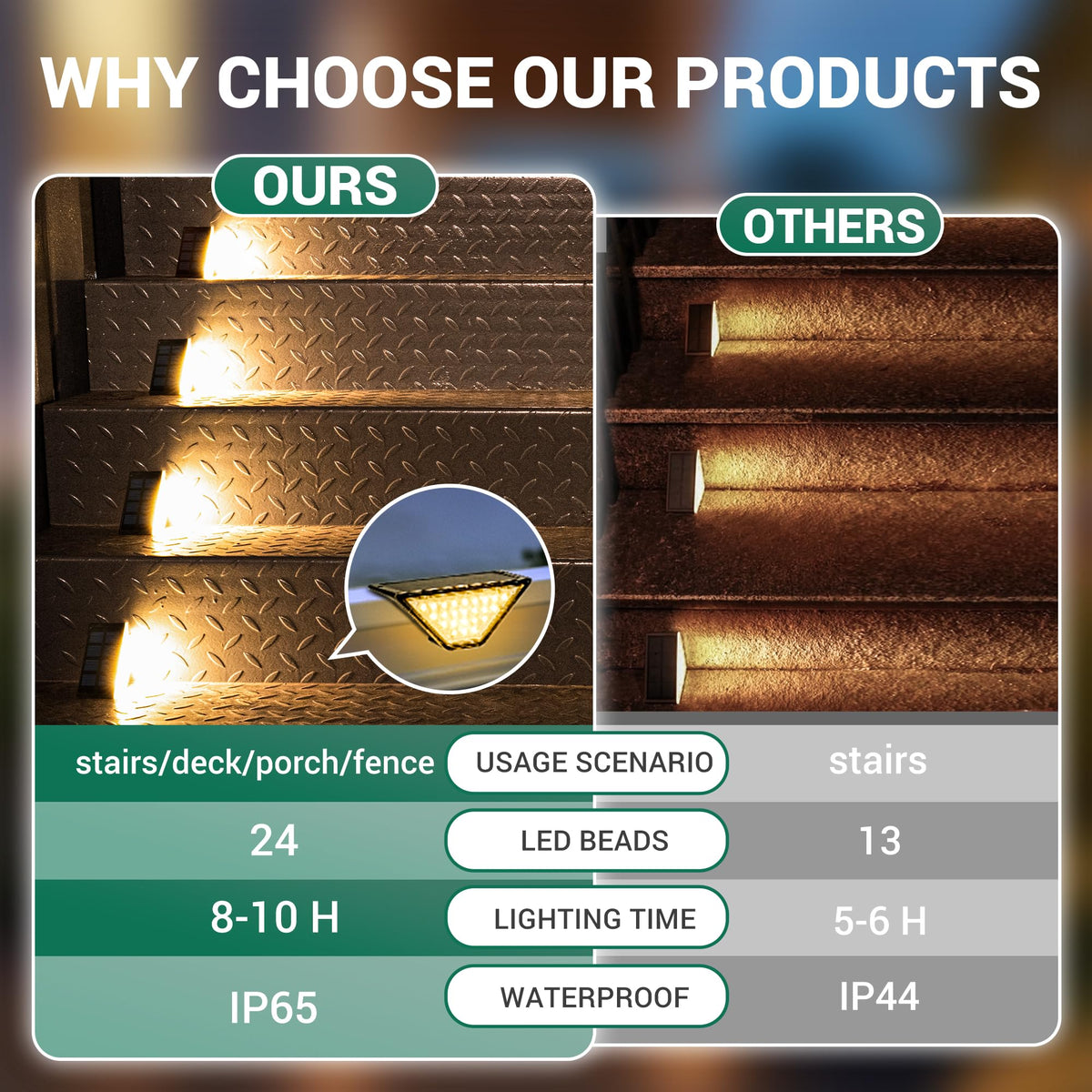 Patiowin Solar Step Lights For Outside,24 Leds Solar Stair Lights Waterproof Ip65,Solar Deck Lights Outdoor For Yard, Porch, Fro