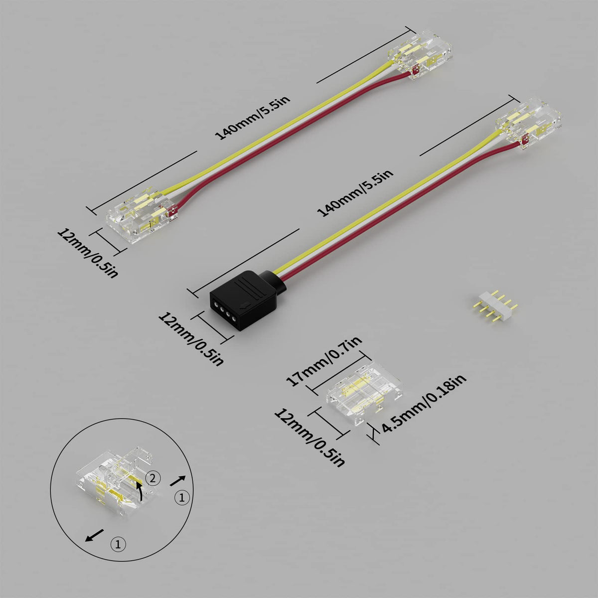 Whether you are extending your light strips or connecting them to a power source, this kit simplifies the installation process. With solderless connectors, you can easily achieve the desired length without the hassle of soldering, making it ideal for quick installations or modifications.