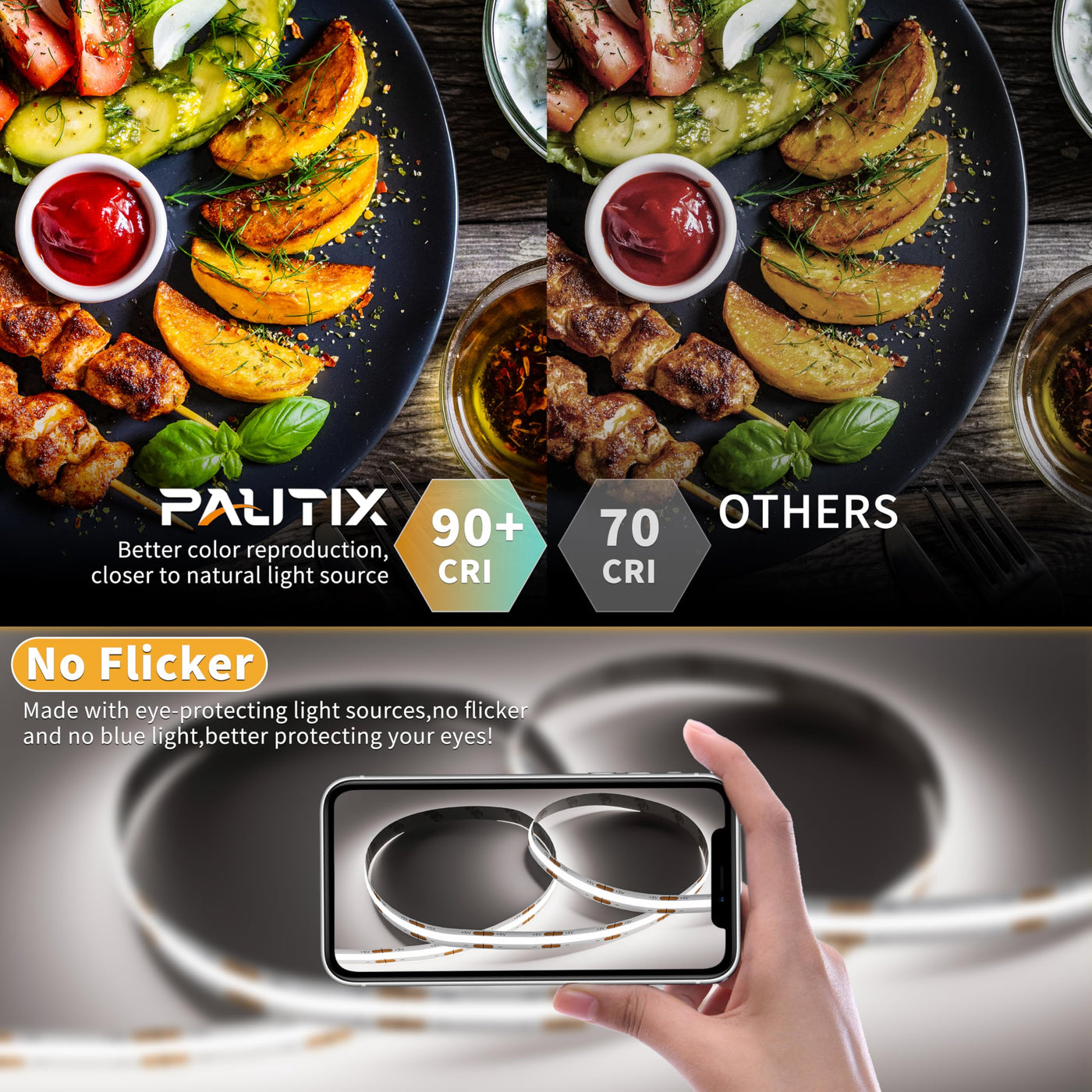 Although Pautix Is A Young Online Brand,Our Team Has Been Focusing On Offering High-Quality Led Light Strips For More Than Ten Years.Pautix Is Committed To Providing You With High-Quality Led Light Strips And Bringing Better Lighting Experience For You What Is A Cob Led Strip Light? Compared To The Smd 2835: 1 Chip On Board, Or 5050: 3 Chips On Board,A Cob(Chip On Board) Led Light Has Multiple Chips On The Same Pcb (Printed Circuit Board),Which Make The Emitting Units Unprecedentedly Close To Each Other, And Create Super Even Lighting Performance Cob Strip Light Has A Large Viewing Angle, Reducing The Refraction Loss Of Light Output. Why Choose Pautix Cob Usb Led Strip Lights? [Upgraded Dimmer] With The Rf Remote And In-Line 3-Button Dimmer,You Can Easily To Adjust The Brightness(0-100%,10-Level). [Safe To Touch]Pautix 6.56Ft Cob Led Strip Light Is Usb Powered(Dc 5V/2A)With Low Heat, Safe To Touch. [Memory Function]With Memory Function,This Usb Powered Cob Led Strip Restores To Its Last Setup To Save Your Time Effectively. [High Cri(>85)]The Cri Is Higher Than 85,Which Is Perfect For Displaying True Color.The Higher The Color Rendering Index,The Stronger The Color Reproduction Ability. Diy Every Corner You Want! Flexible Design Allows You To Diy For Your Kitchen,Tv,Pc,On The Edges And Inside Of Your Wardrobe,Make Your Home Look Brightness Authentic 3M Adhesive Easy To Install, Use Authentic 3M Adhesive For Durable Installation Specification Led Type: Cob Led Strip Light With Remote(Usb Powered) Length: 6.56Ft/2M Width: 8Mm Led Quantity: 640 Pcs(320Leds/M) Cutting Unit: Every 0.47In(12Mm) Color Temperature: 6000K(Daylight White) Dimmmable: Yes(0-100%,5-Level Brightness Adjustment)
