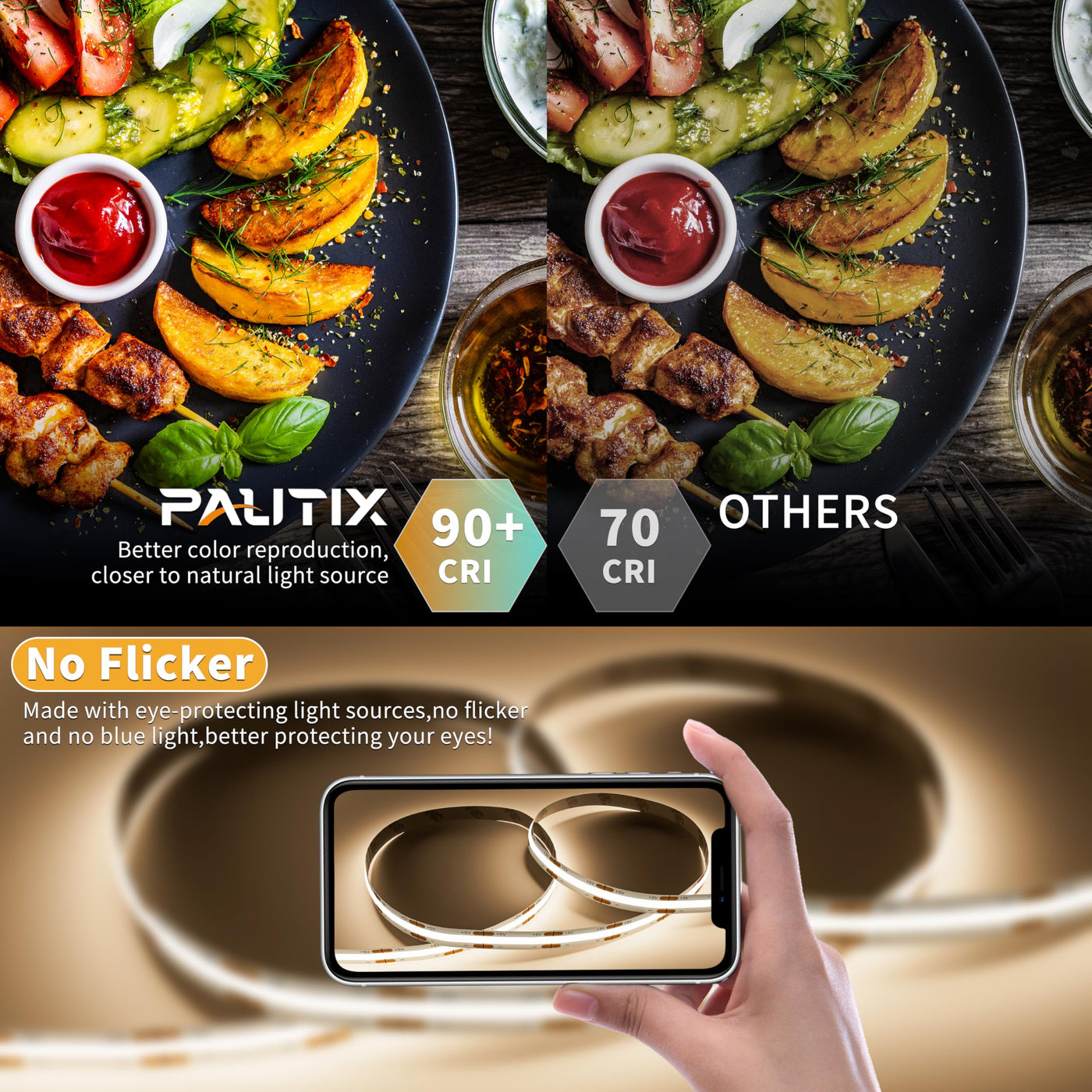 Pautix 5V Usb Cob Led Strip Light 6.56Ft/2M 640Leds Dimmable 4000K Natural White Cri90+ With Rf Remote,1200Lm,Flexible Tape Light For Under Cabinet,Bedroom,Tv Backlight,Kitchen,Home Diy Lighting