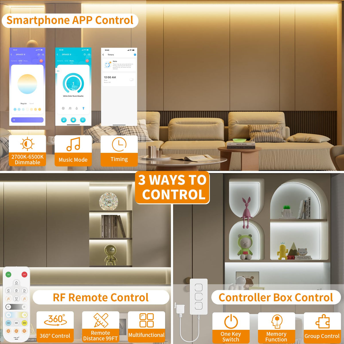 Q: How do I control the brightness and color temperature of the PAUTIX LED Strip Light?A: You can easily control the brightness and color temperature of the PAUTIX Tunable COB LED Strip Light using the upgraded RF remote, which allows for 360° multi-directional control without needing to point directly at the receiver.