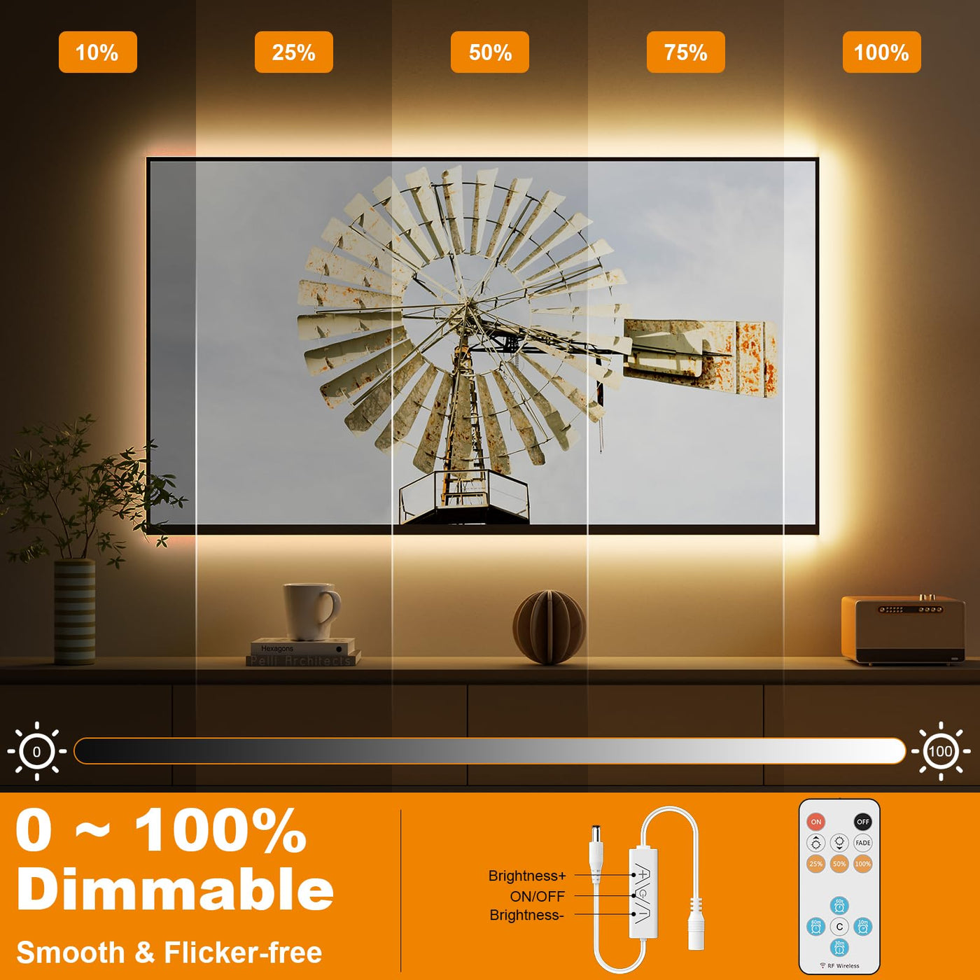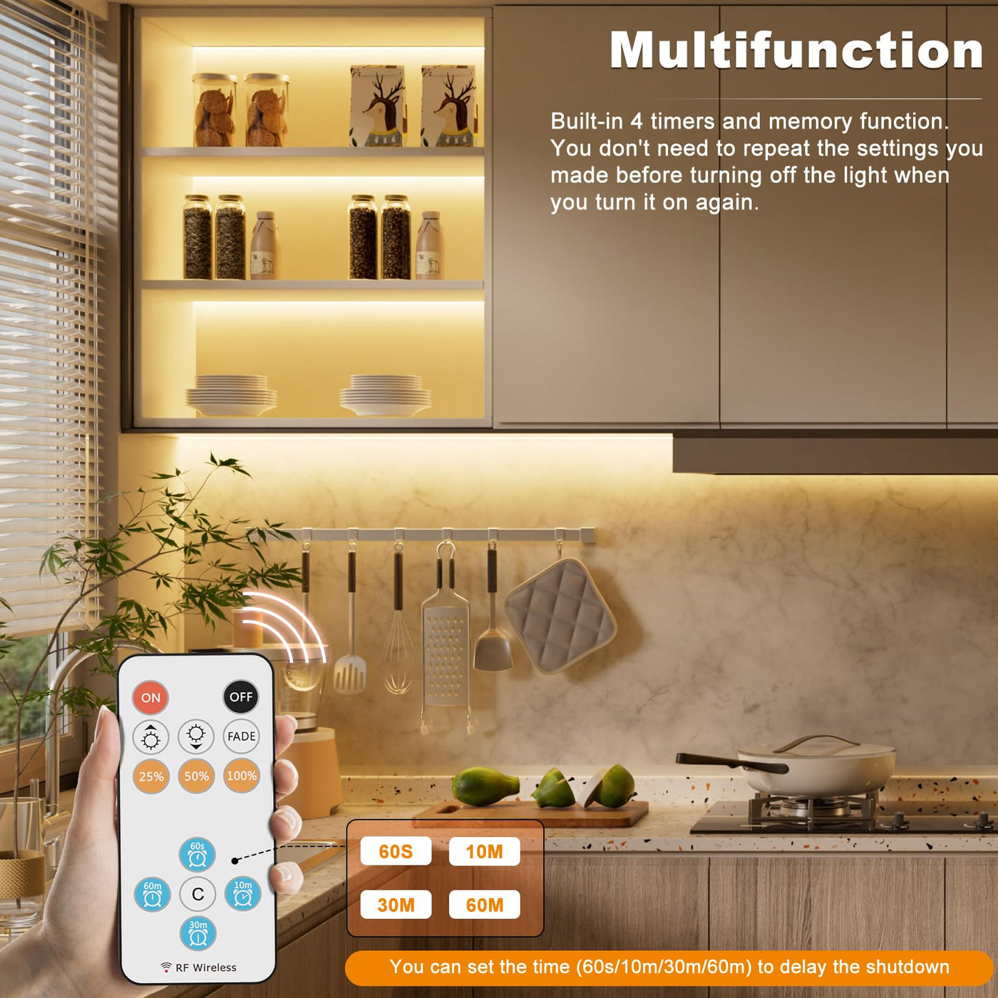 Q: How do I control the brightness of the PAUTIX COB LED Strip Light?A: You can easily control the brightness of the PAUTIX COB LED Strip Light using the included RF remote control, which offers three dimming levels: 25%, 50%, and 100%. This allows you to adjust the lighting to suit different scenarios and preferences.