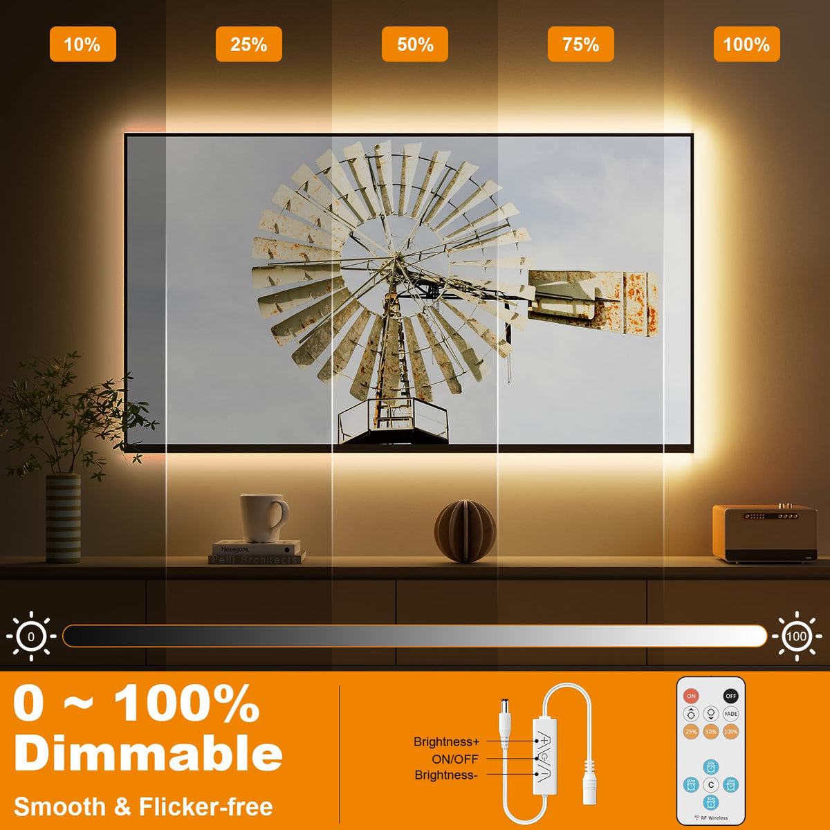 Q: Is the PAUTIX COB LED Strip Light dimmable and how can I adjust the brightness?A: Yes, the PAUTIX COB LED Strip Light is dimmable. It comes with an RF remote control that provides 10 dimming levels, allowing you to easily adjust the brightness to your preference. You can also choose from 3 preset brightness levels: 25%, 50%, and 100%.