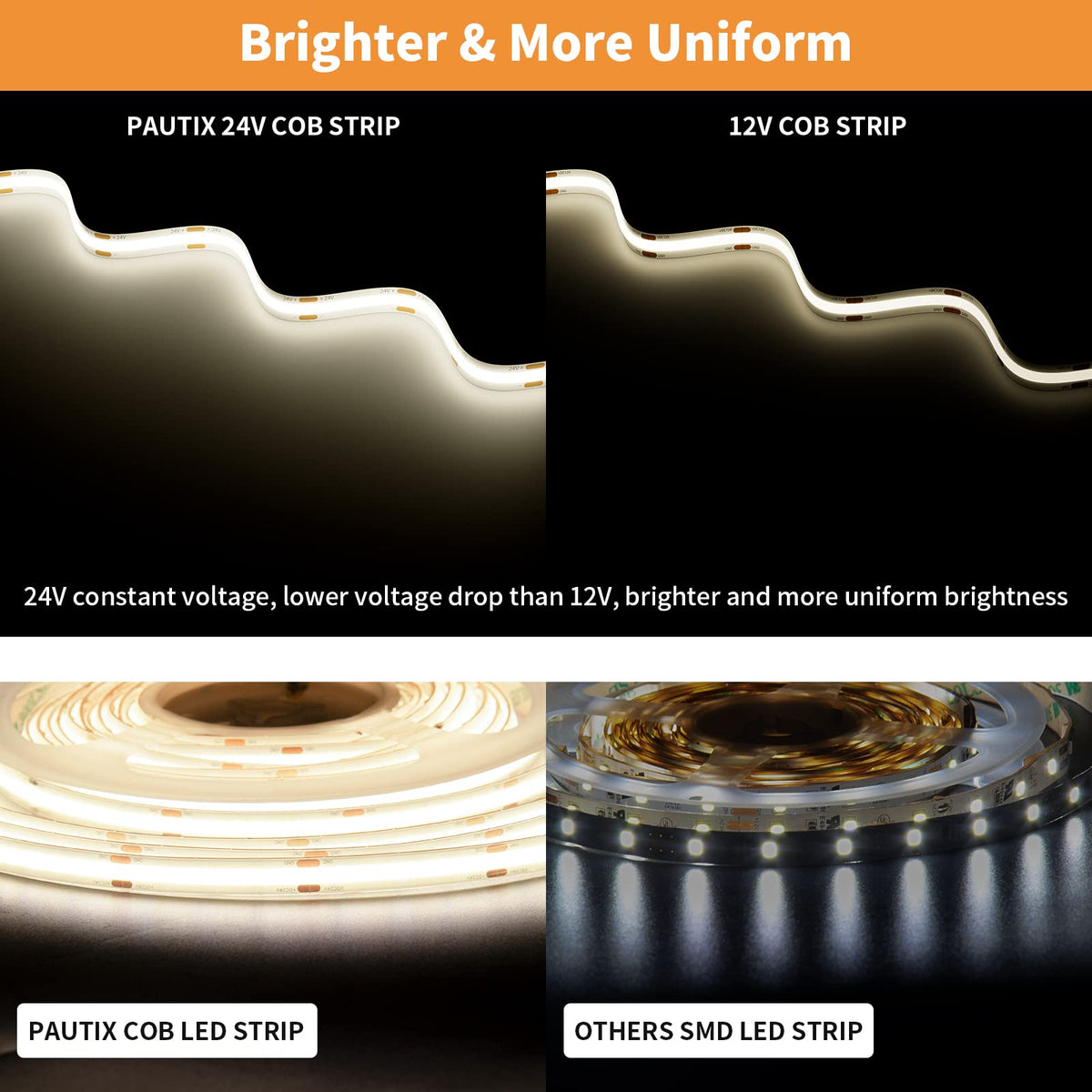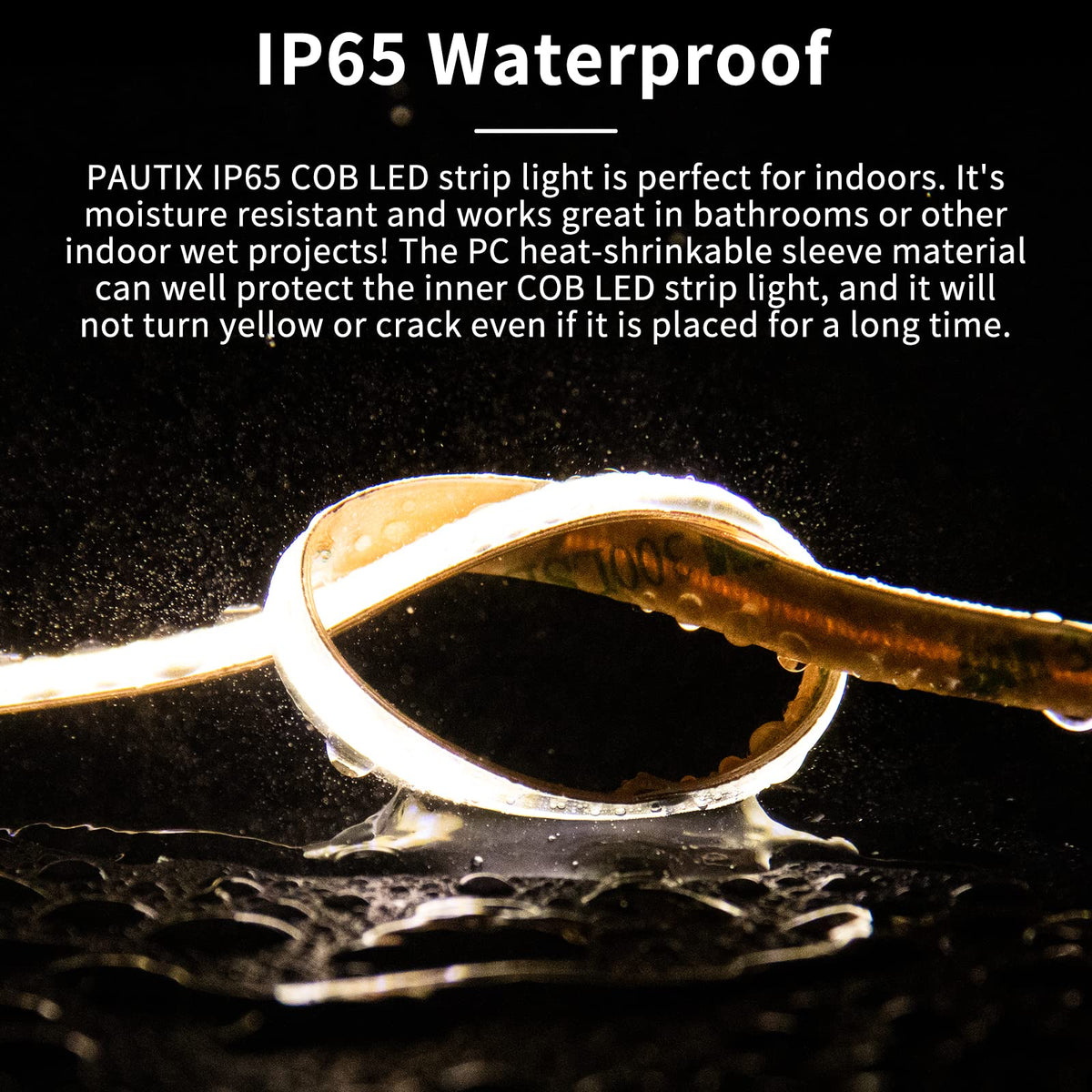 Pautix Cob Led Strip Light Ip65 Waterproof 32.8Ft/10M 5040Leds Natural White 4000K,High Lumen Flexible Cri93+ Led Tape 24V Super