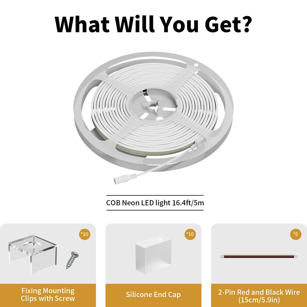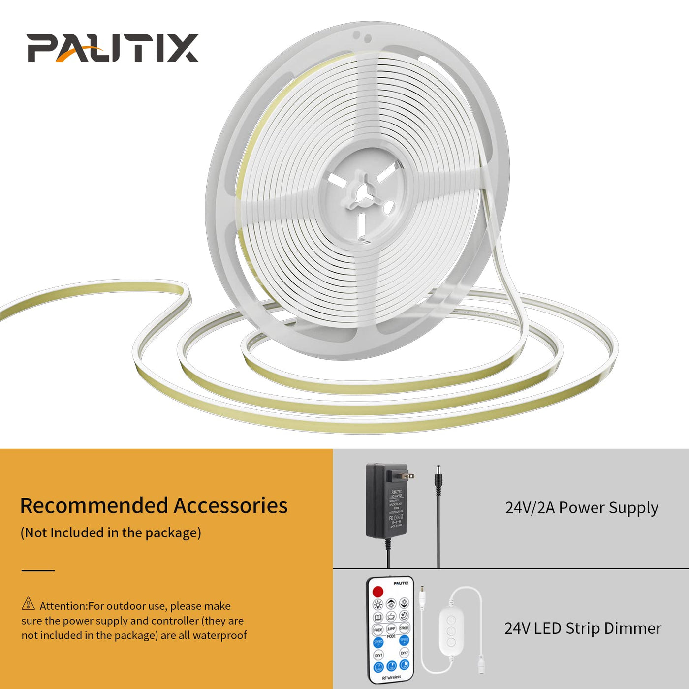 Specification: - Led Type: Cob Neon Led Strip Light -Product Dimension: Length: 16.4Ft/5M ; Width: 10Mm/0.4In; Height: 4Mm/0.16In -Led Quantity: 2520 Pcs(504Leds/M) -Cutting Unit: Every 1.63In(41.5Mm) -Color Temperature: 2700K(Warm White) -Color Rendering Index(Cri): >90 -Work Voltage: 24V -Power: 10W/M(It Is Recommended To Use A Power Supply At Least 24V/2A For 16.4Ft Length) Package List: - Pautix Ip68 Waterproof Cob Neon Led Strip Light *1 - 2-Pin Wire(15Cm/5.9In) * 5 - Fixing Mounting Clips With Screw * 10 - Silicone End Cap* 10 Cob Led Strip,Cob Led Strip Light,Cob Light Strip,Led Cob Strip,Cob Led,Cob Led Strip Rgb,Rgb Cob Led Strip,Warm White Led Strip Lights,Warm White Led Strip Light,Bright White Led Strip,Cob Rgb Led Strip,White Strip Lights With Remote,White Led Strip Lights,Led Strip Lights,Cob Strip Light 24V 12V 5V Usb Super Bright High Lumen Cri90 Warm White Strip Light Led Cob 2700K 3000K 4000K 5000K 6000K 6500K