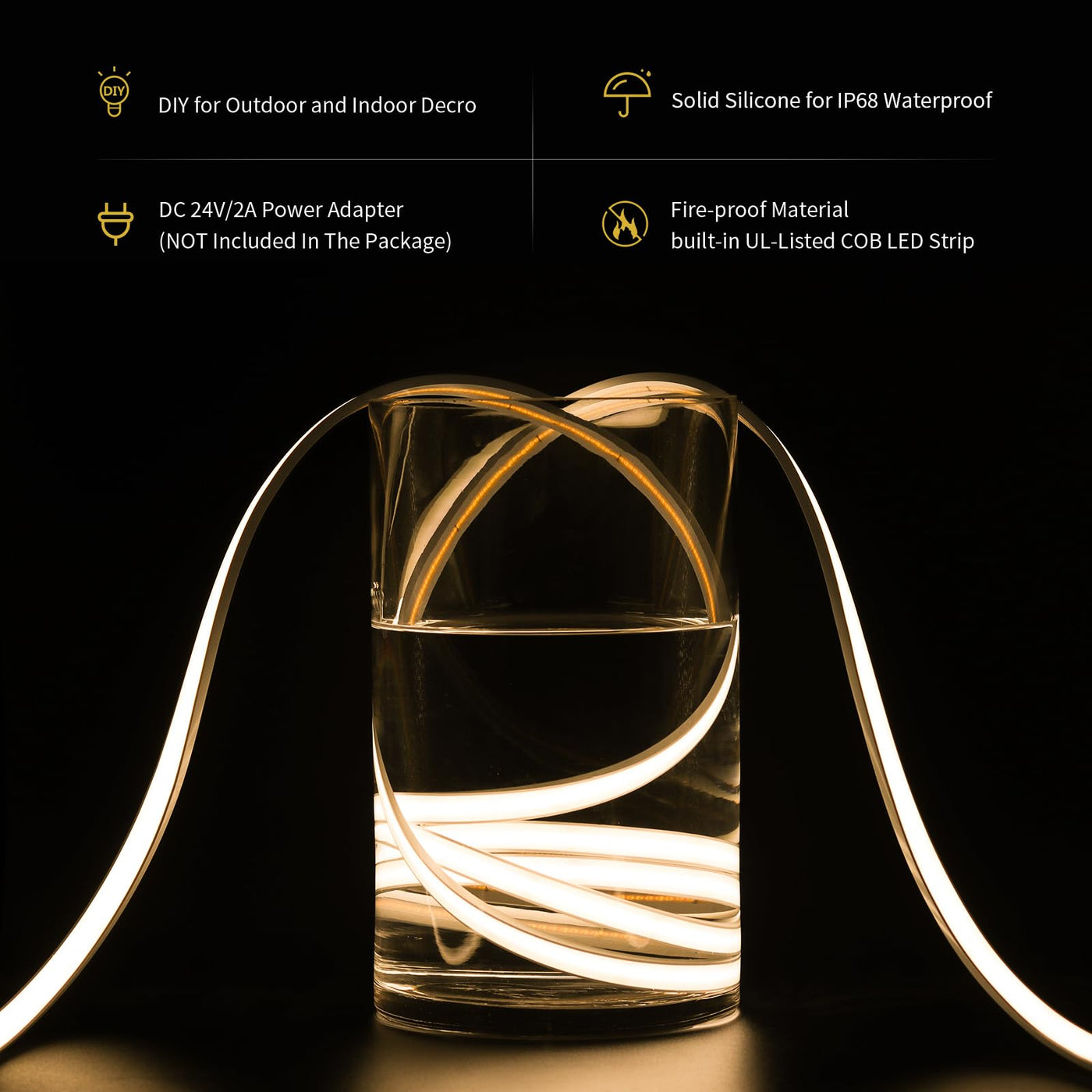 Pautix Cob Led Strip Neon Rope Light 16.4Ft/5M, 2700K Warm White 504 Leds/M 24V,Silicone Led Neon Light Ip68 Waterproof For Outd