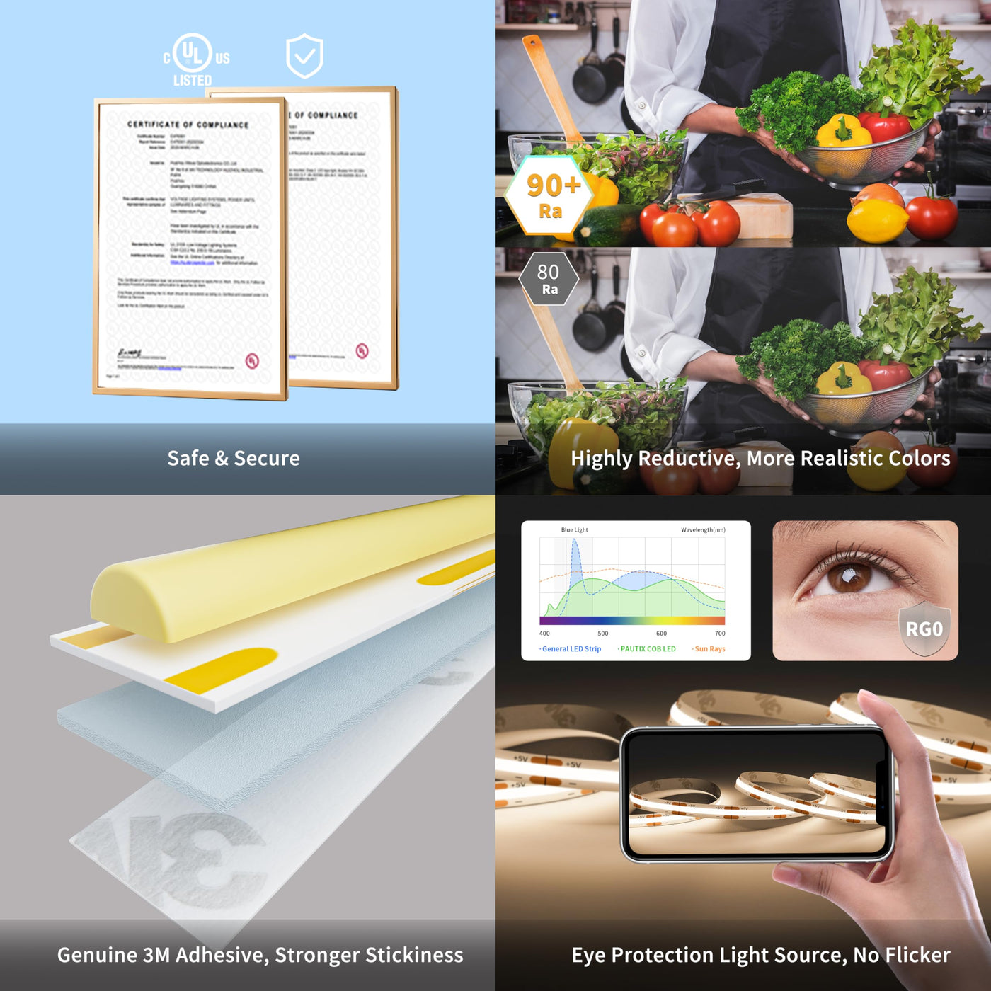 Q: Where can the PAUTIX COB LED strip be used effectively?A: This versatile LED strip is suitable for various applications including cabinets, bedrooms, kitchens, closets, and display areas, enhancing the ambiance and providing effective lighting where traditional lights may not reach.