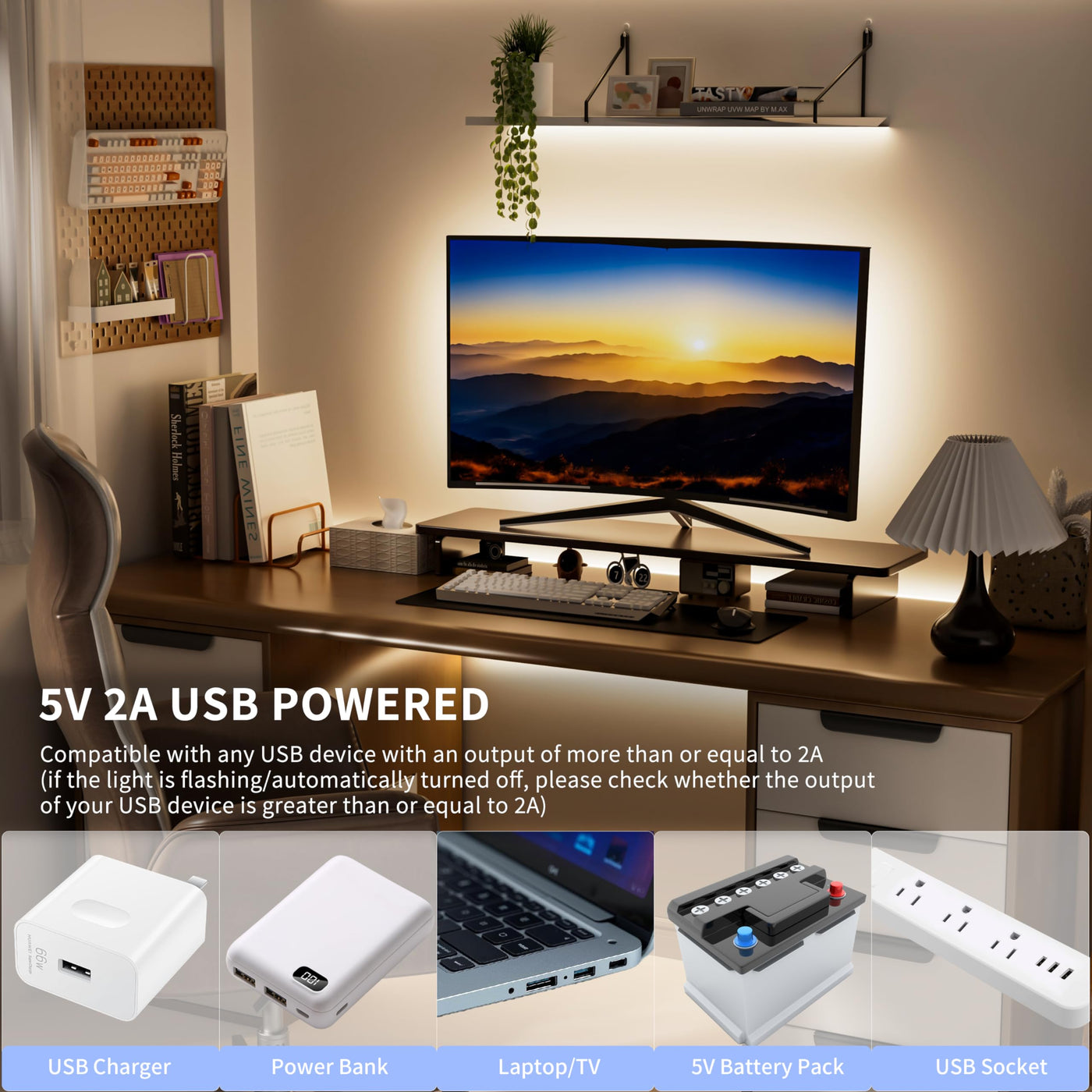 Q: What devices are compatible with the PAUTIX COB LED strip's USB power?A: The PAUTIX COB LED strip is designed to be powered by 5V USB sources, making it compatible with USB sockets, USB chargers, power banks, computers, and TVs.