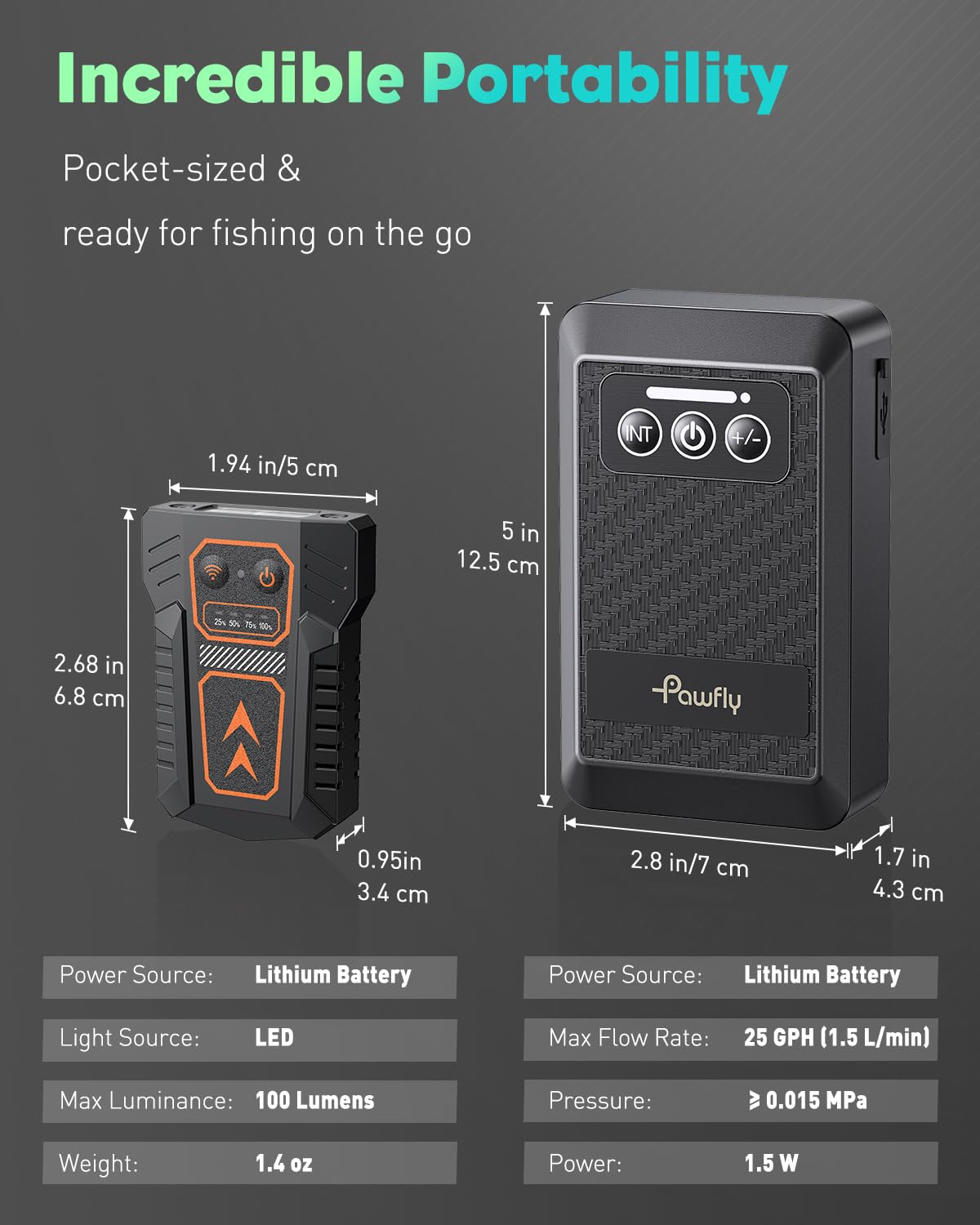 Pawfly Live Bait Bucket Air Pump & Aerator Kit, Portable Battery Aerator For Fish With Rechargeable Led Hat Light, Ultra Bright Waterproof Clip Flashlight For Fishing, Headlamp Cap Lights