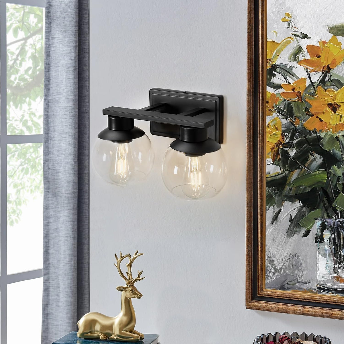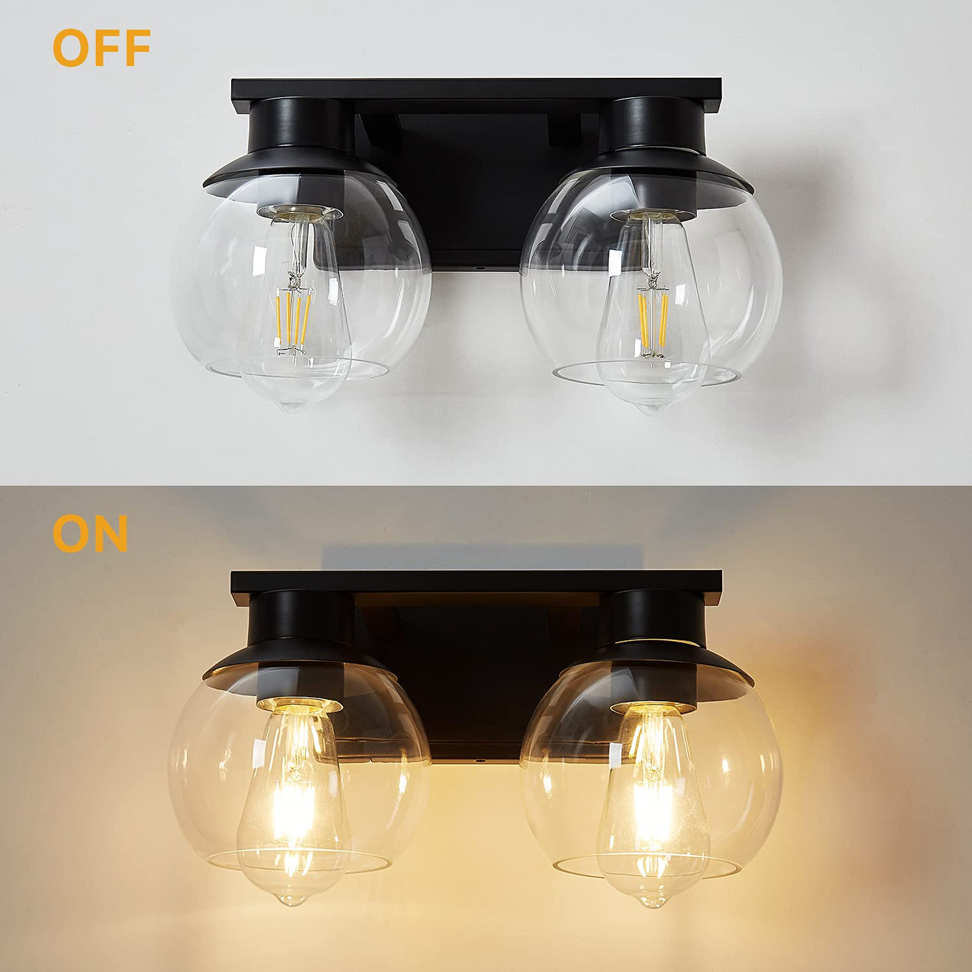 Pazala 2 Light Vanity Lights, Black Bathroom Wall Sconce Light With Globe Glass Shade, Bathroom Light Fixture Over Mirror For Be