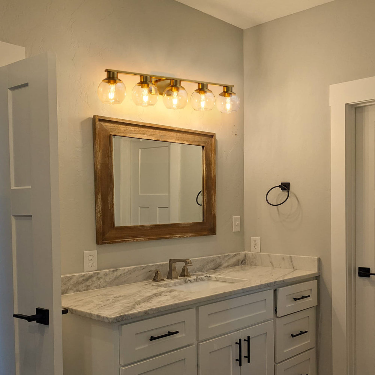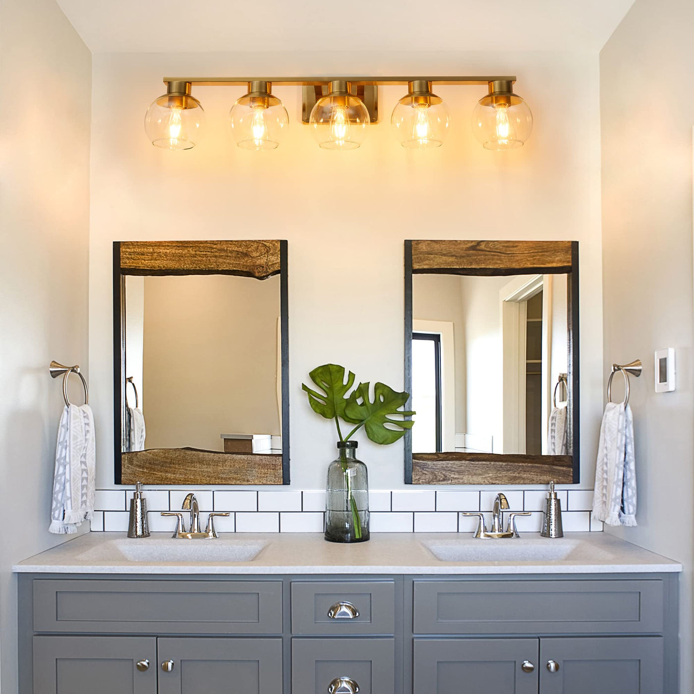 PAZALA 5 Light Bathroom Vanity Light Fixture Over Mirror 37 in Globe Glass Shade Brushed Brass 1698-5-JS