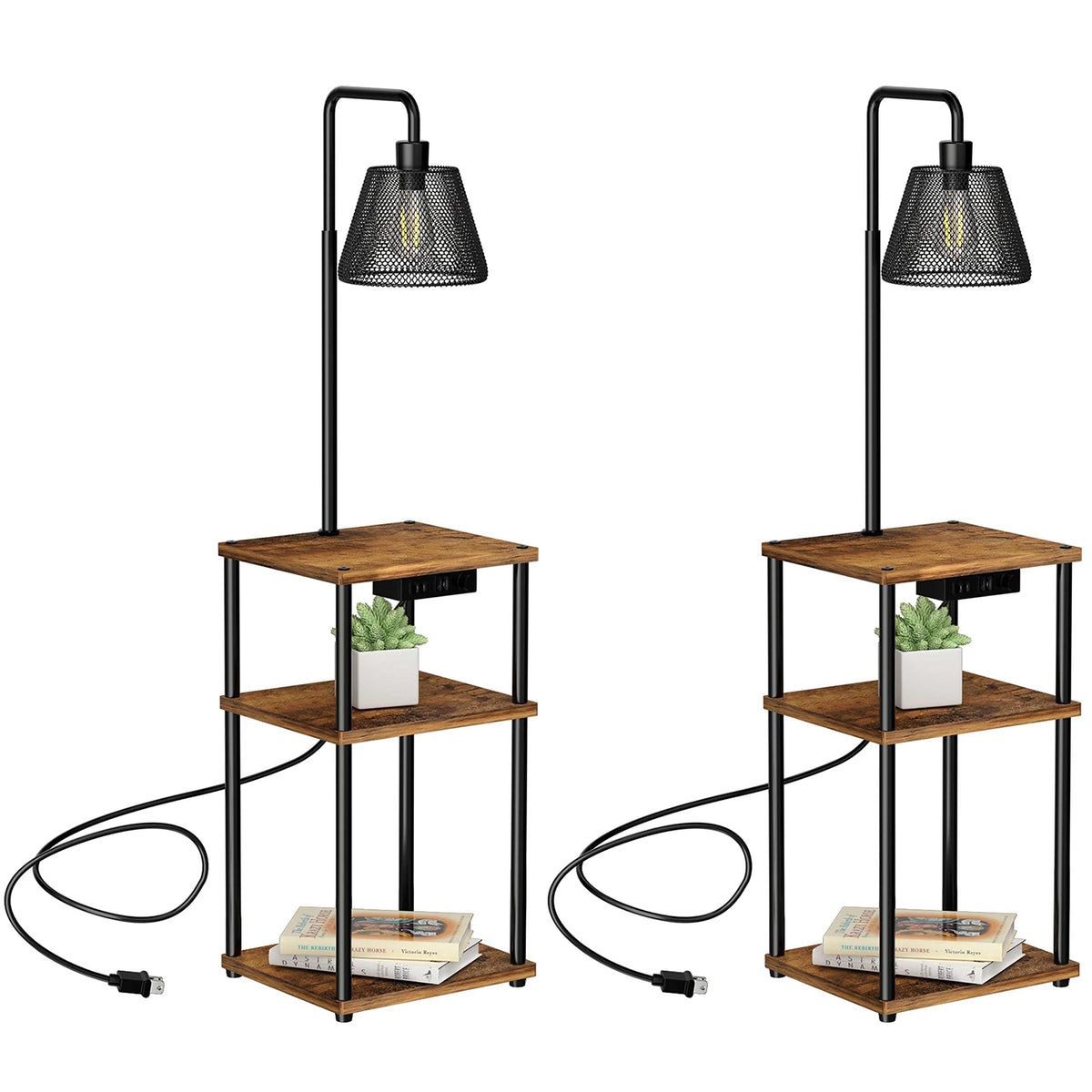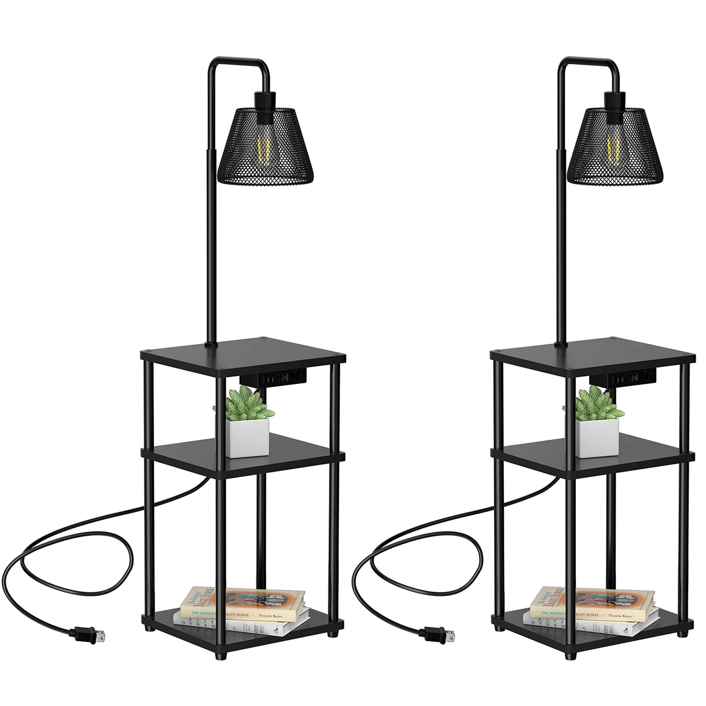 Pazarfami Floor Lamp With Table, Side Table With Usb Charging Port And Outlet, End Table With Floor Light For Living Room, Bedroom, Guest Room, Bulb Included (Black-2 Pack)