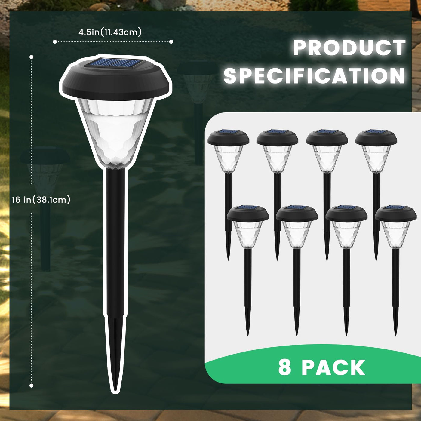 Pearlstar 8 Pack Solar Pathway Lights Outdoor, Waterproof Auto On/Off Solar Outside Lights For Yard, Garden, Path, Walkway, Driveway And Lawn