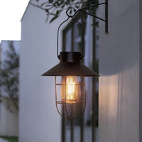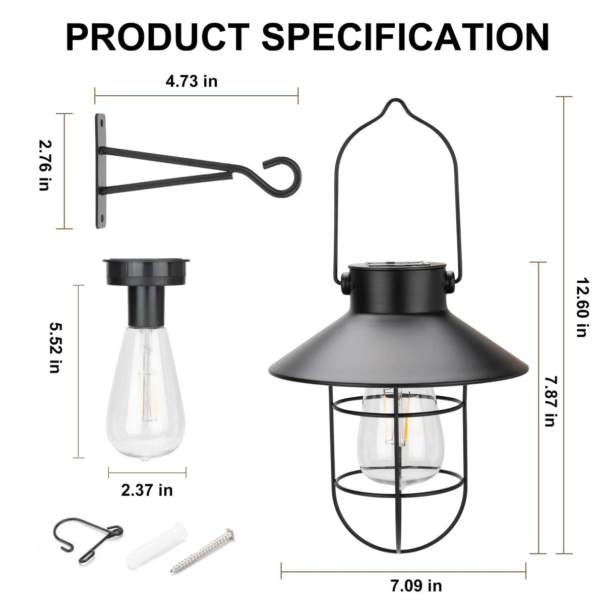 Pearlstar Solar Lanterns Outdoor Metal Solar Powered Hanging Lights Waterproof For Wall Yard Garden Patio Garage Balcony Porch Fence Decor, Warm White Edison Bulb,With Wall Mount Kit(Black-1Pack)