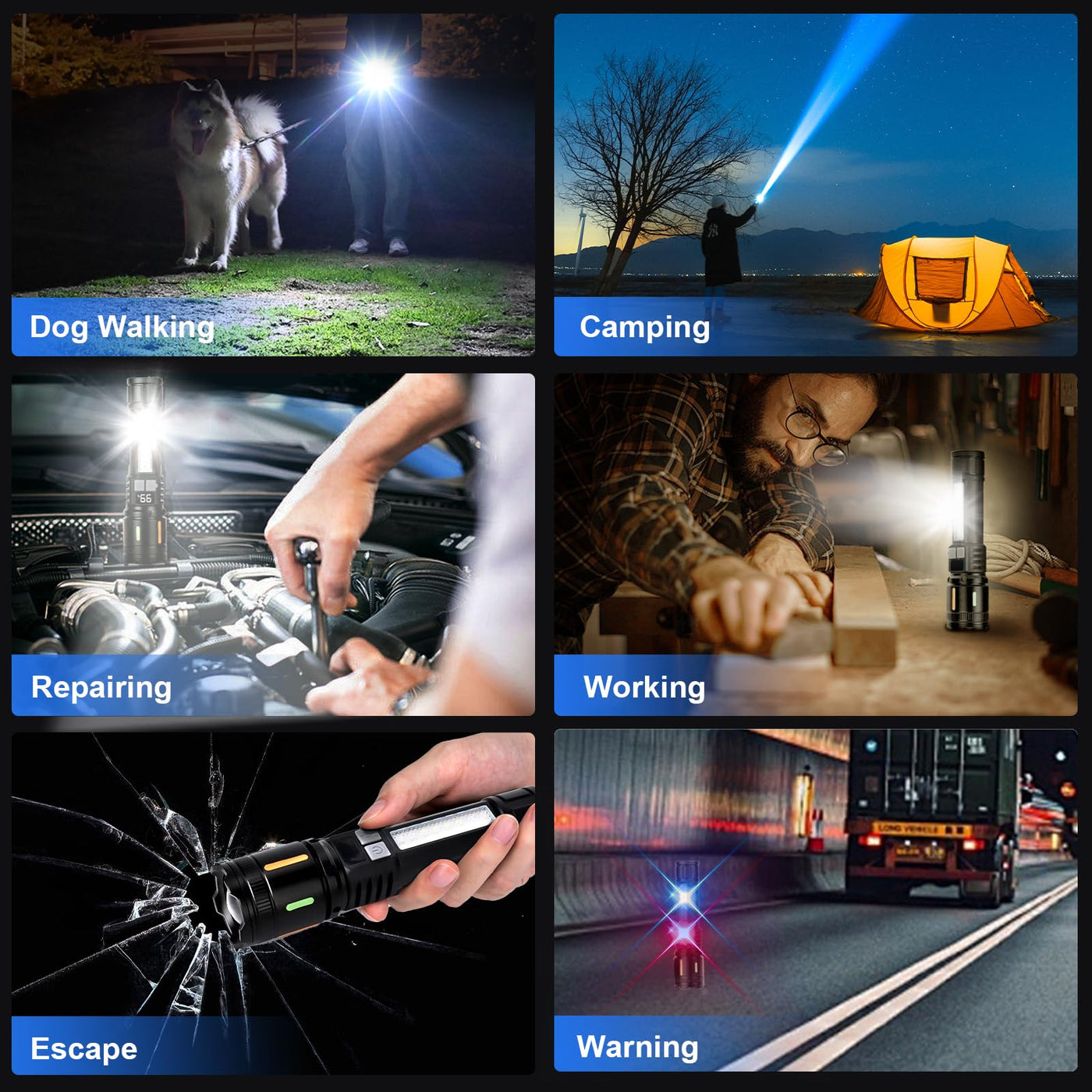 Flashlights High Lumens Rechargeable 2 Packs, Peascat 990,000 Lumens Led Battery Powered Tactical Handheld Flashlight With 5 Modes, Cob Side Light, Usb C, Zoomable, Waterproof For Outdoor Emergencies