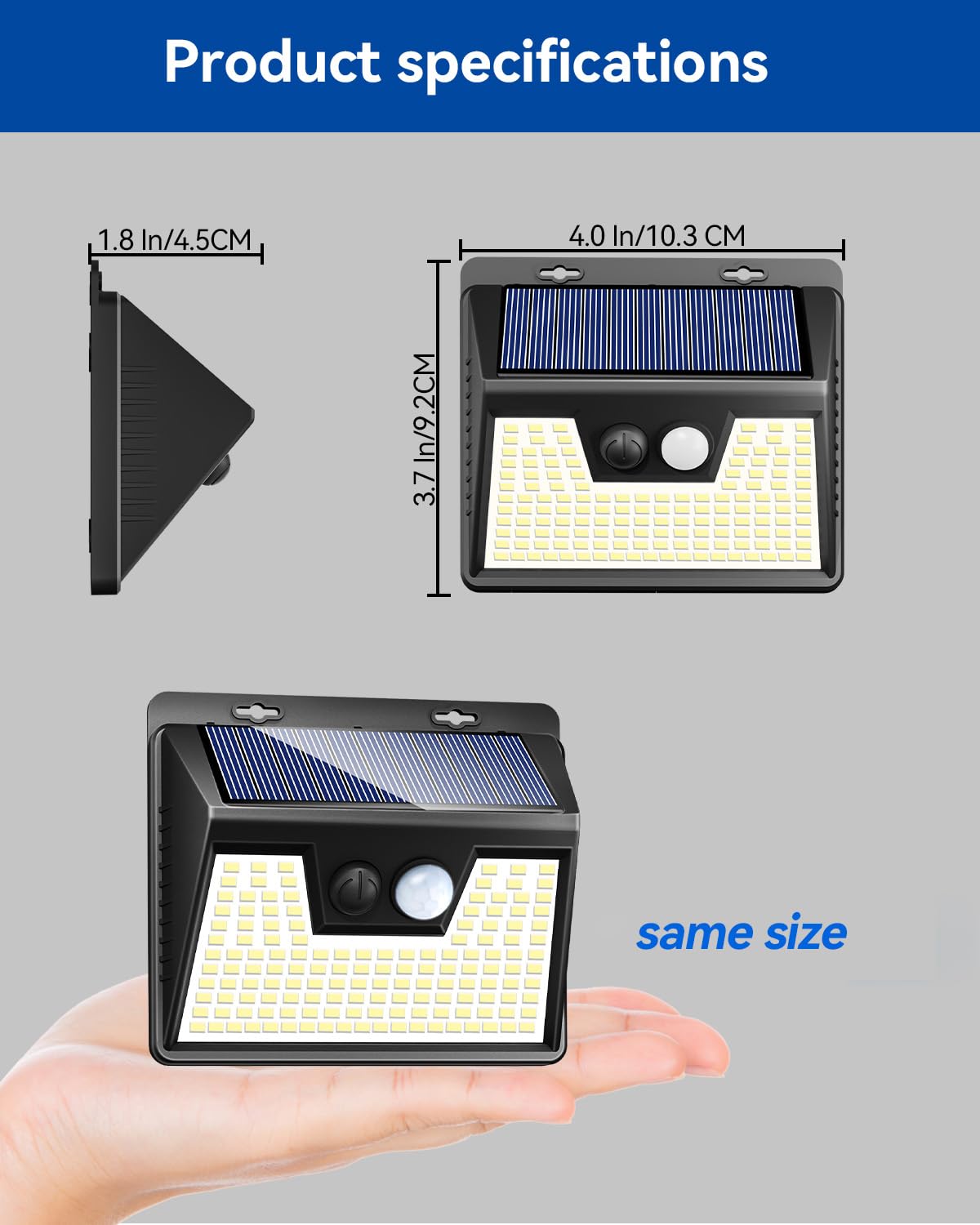 - **Advanced Motion Detection**: Built-in PIR motion sensors detect movement up to 4-5 meters away with a 120° detection angle, automatically activating the lights for enhanced security.