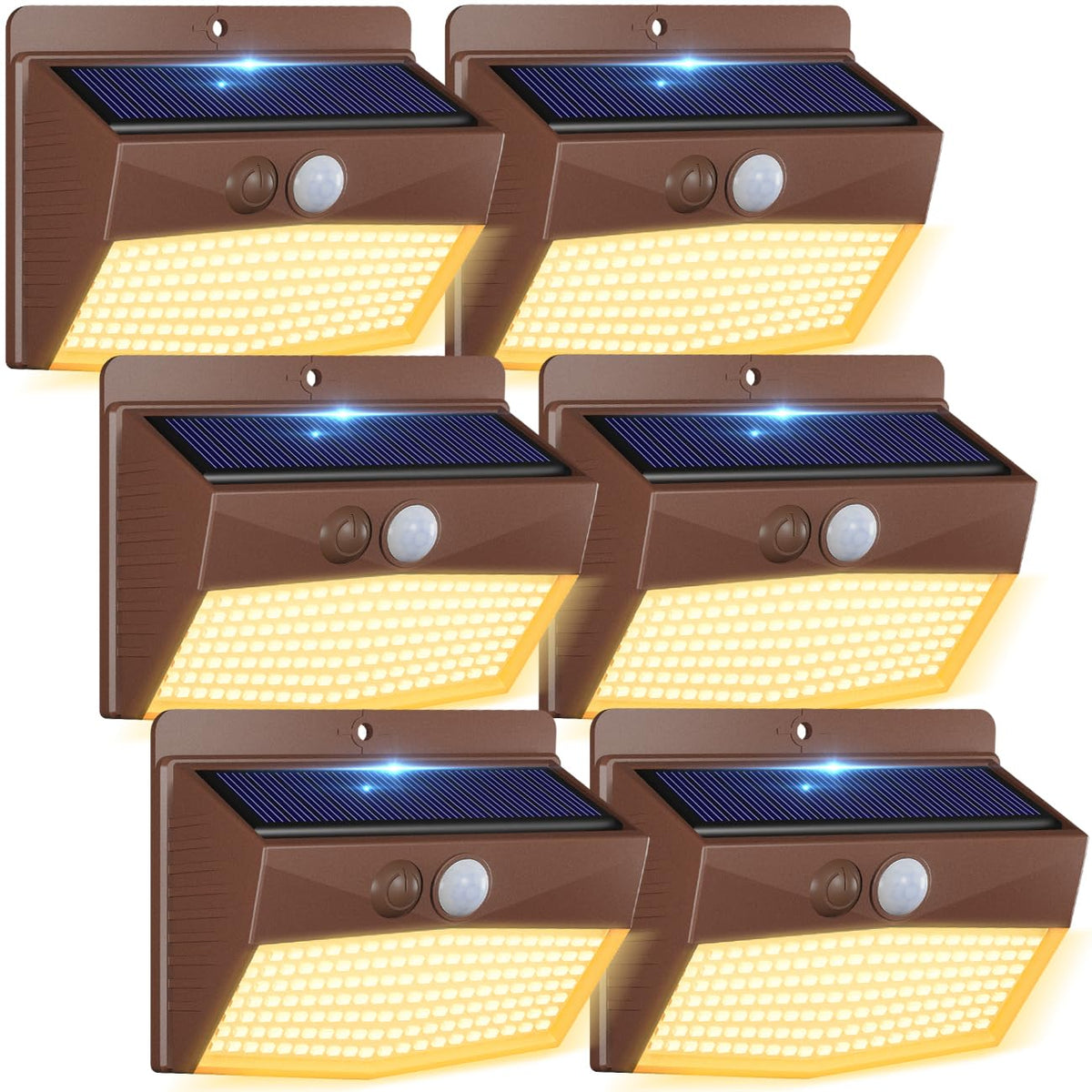 Peasur 6 Packs Solar Outdoor Lights Motion Sensor Solar Security Lights Waterproof With 3 Lighting Modes Solar Powered Wall Lights Outside For Garden Fence Yard Deck, Brown Warm