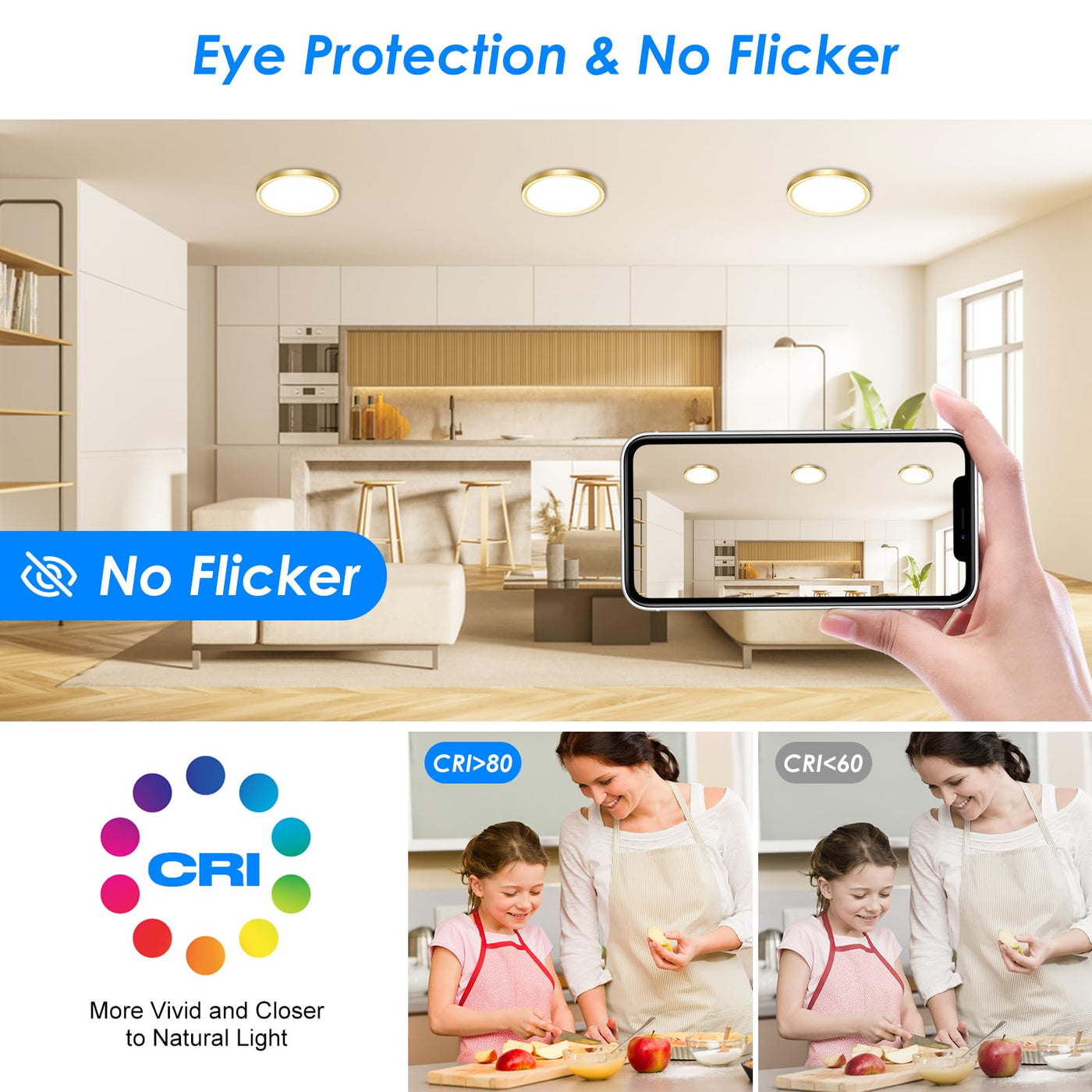 Q: Is this ceiling light safe for eye protection?A: Yes, the light is flicker-free, blue light-free, and features a high color rendering index of over eighty, ensuring a stable and natural light source that is safe for your eyes.