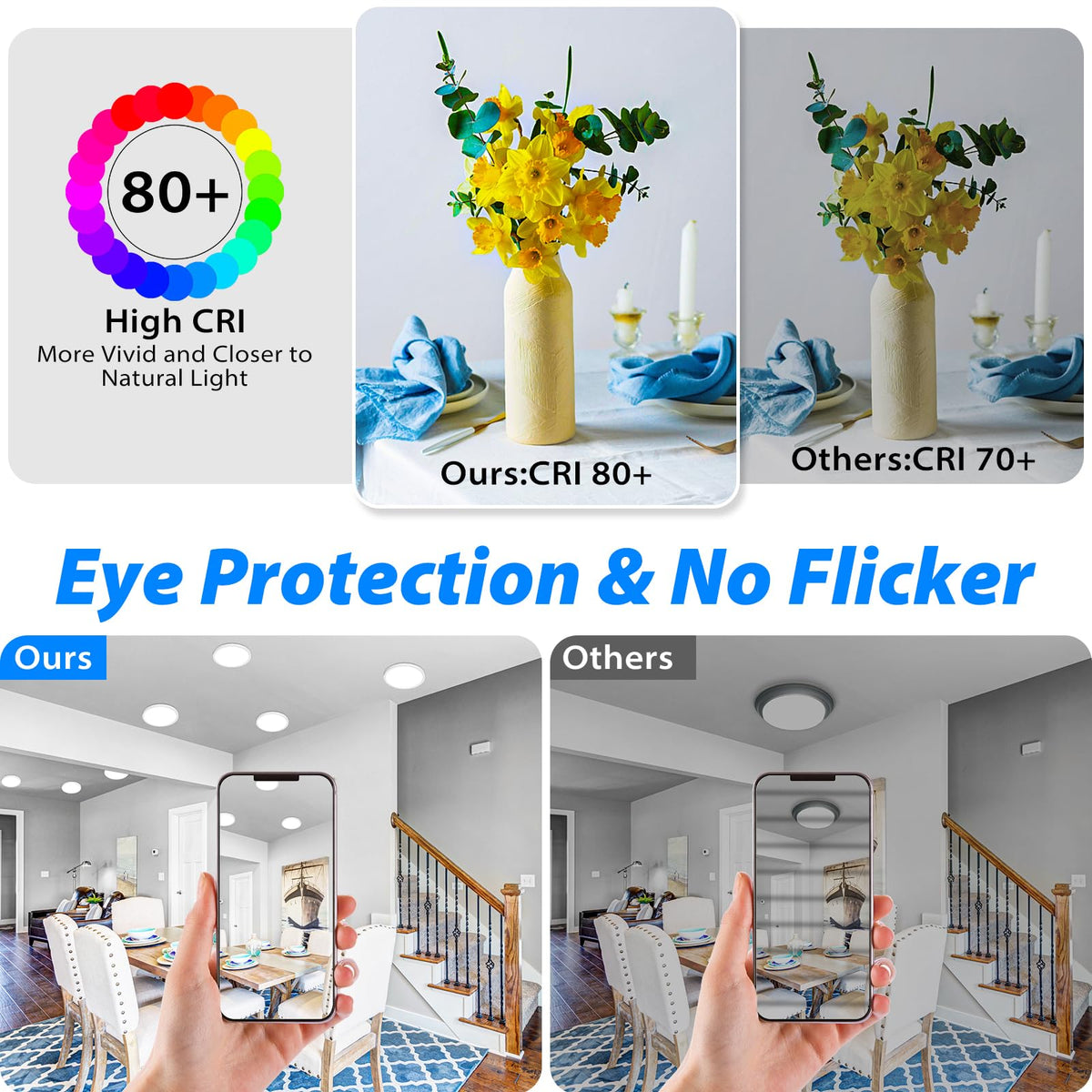 5 Color Options: Easily switch between 2700K warm white, 3000K soft white, 3500K natural white, 4000K cool white, and 5000K bright white to create the perfect ambiance in any room.