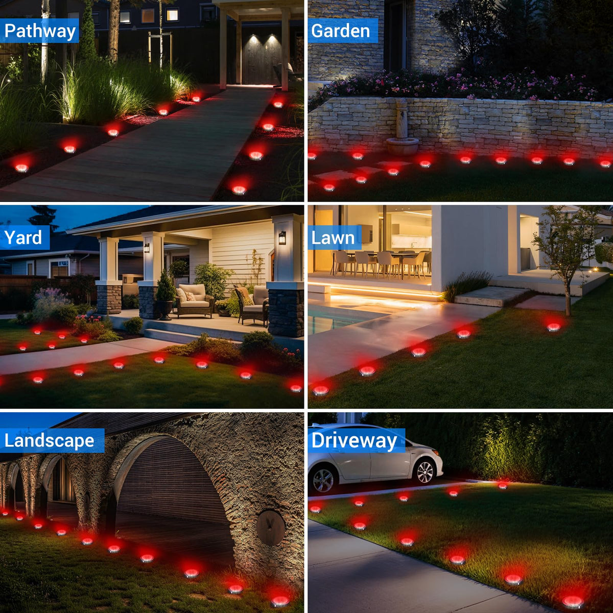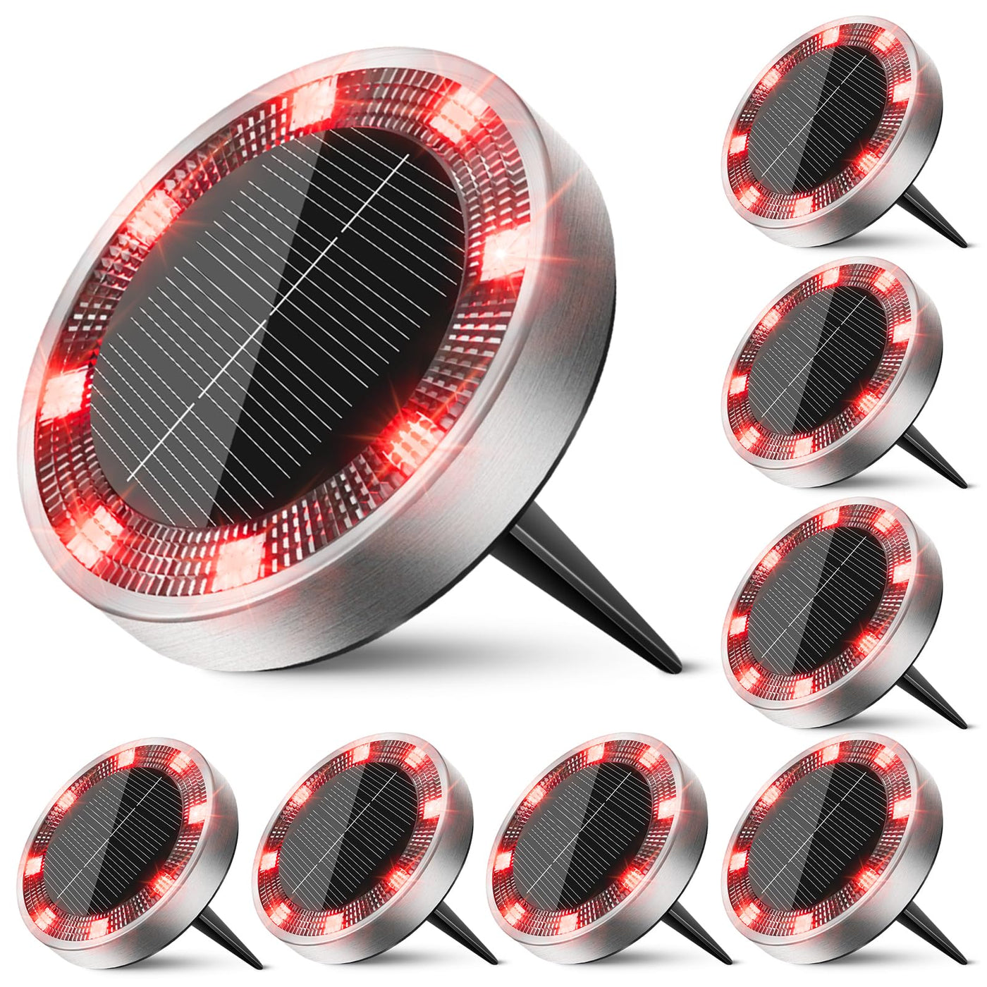 Peasur Mini Solar Ground Lights Outdoor 8 Pack Flat Solar Powered Disc Lights Ip68 Waterproof Anti-Rust Landscape Lighting For Pathway Garden Yard Lawn Walkway Landscape Driveway Red