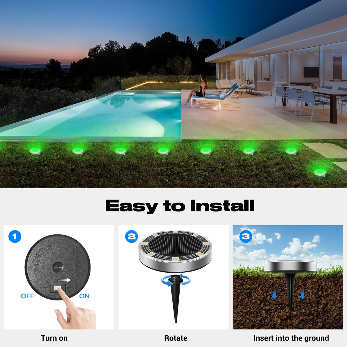 Peasur Solar Ground Lights Outdoor 12 Pack Flat Solar Powered Disc Lights Ip68 Waterproof Anti-Rust Landscape Lighting For Pathway Garden Yard Lawn Walkway Landscape Driveway Green