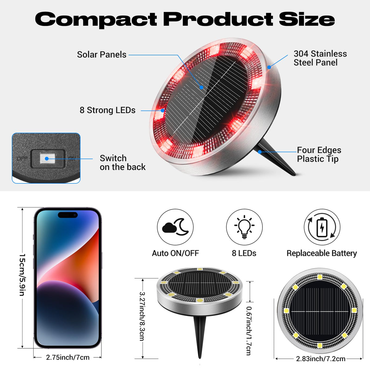 Peasur Solar Ground Lights Outdoor 12 Pack Flat Solar Powered Disc Lights Ip68 Waterproof Anti-Rust Landscape Lighting For Pathway Garden Yard Lawn Walkway Landscape Driveway Red