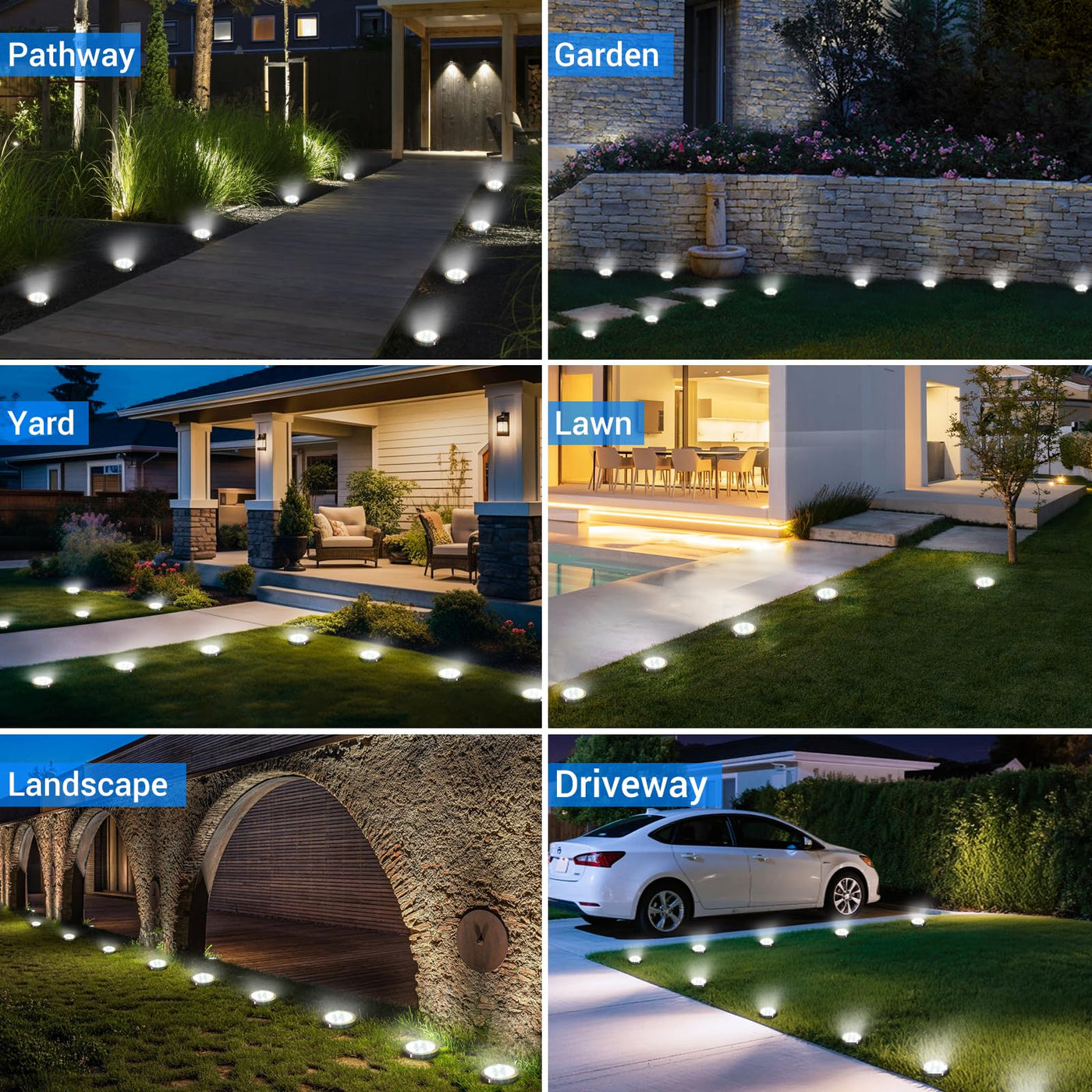 Peasur Solar Ground Lights Outdoor 24 Pack Flat Solar Powered Disc Lights Ip68 Waterproof Anti-Rust Landscape Lighting For Pathway Garden Yard Lawn Walkway Landscape Driveway Cool White