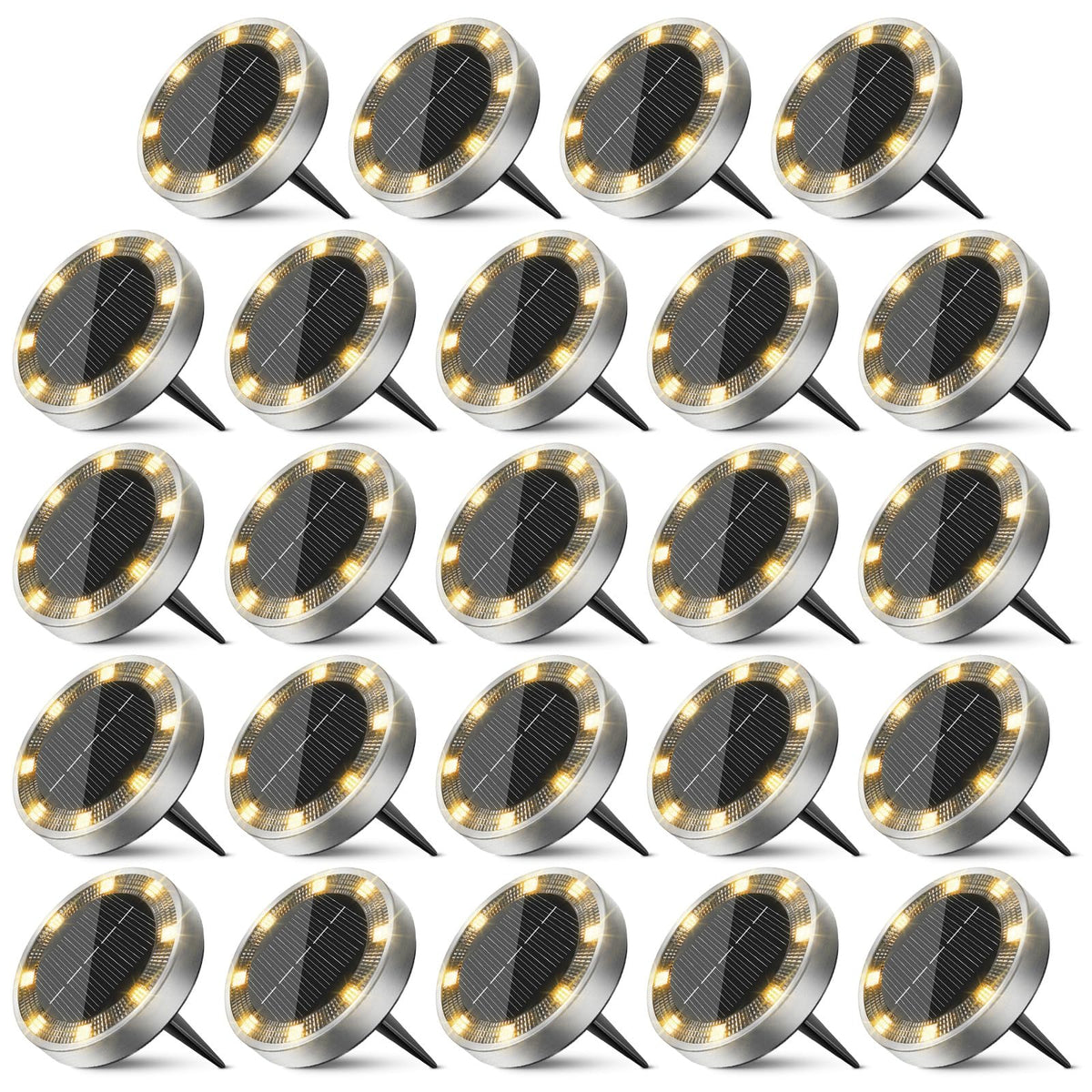Peasur Solar Ground Lights Outdoor 24 Pack Flat Solar Powered Disc Lights Ip68 Waterproof Anti-Rust Landscape Lighting For Pathway Garden Yard Lawn Walkway Landscape Driveway Warm White
