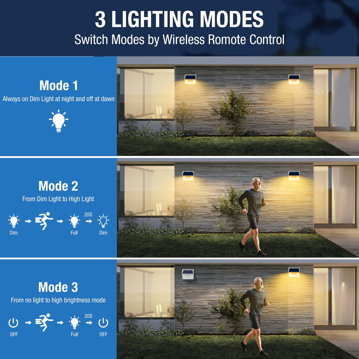 Peasur Solar Lights Outdoor Motion Sensor Waterproof, 6Pack 140Led White Solar Powered Fence Lights, 3 Modes Solar Security Wall