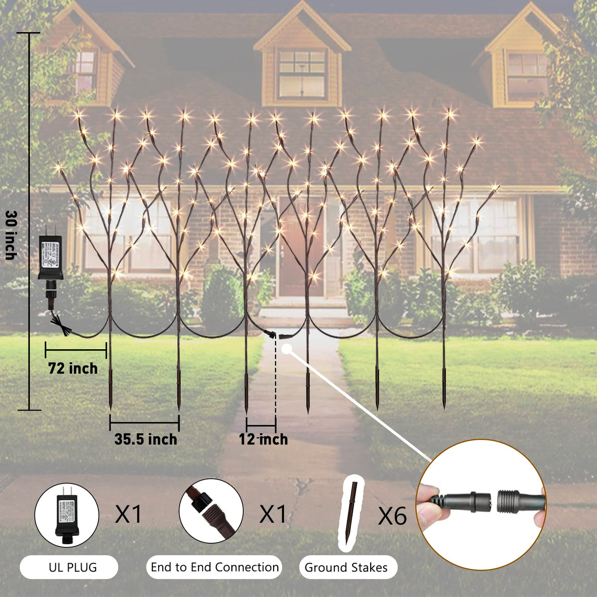PEIDUO Lighted Willow Branches 30Inch 120 LED Twig Lights, 6PK Tree Branch Pathway Light for Holiday Xmas Decorations Indoor Out