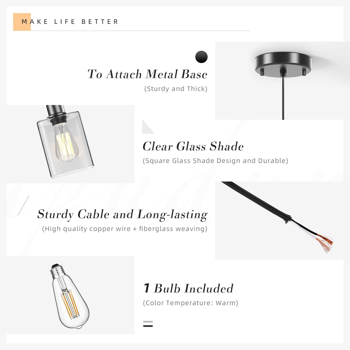 Pendant Light Kitchen Island Lighting 2 Pcs, With Bulb & Clear Glass Shade - 59 Inch Hanging Cord Farmhouse Hanging Lighting Fix