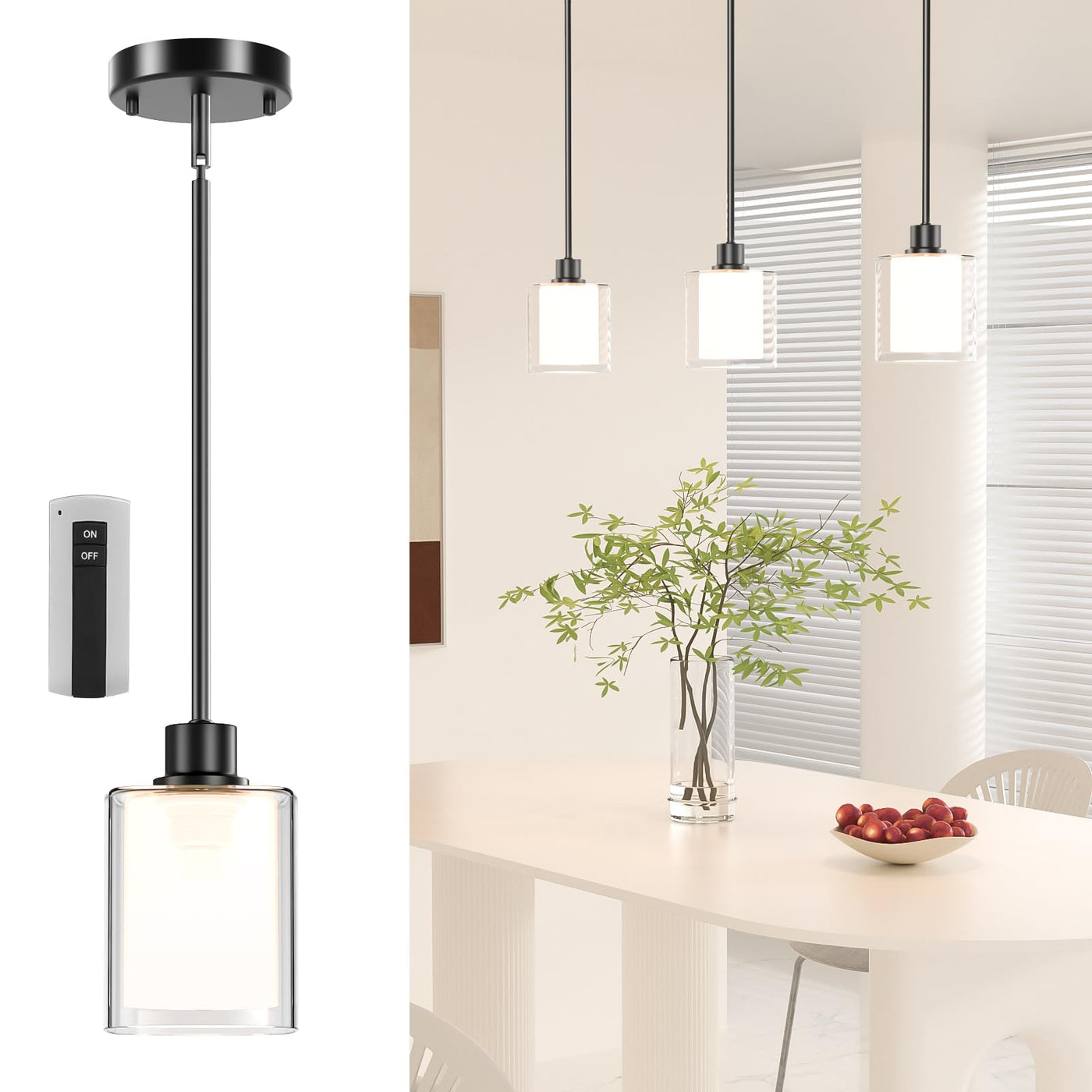 Pendant Light Kitchen Island Lighting, Height Adjuatable Rod Clear Dual Glass - With 3 Color Temperatures Bulb & Remote Control,