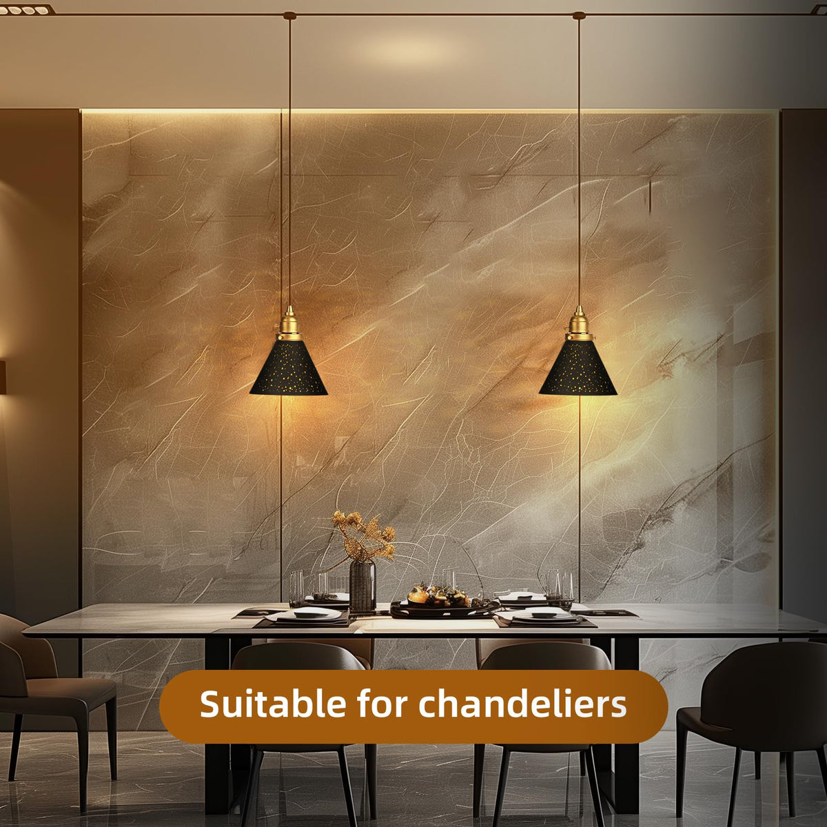 Q: How does the design of this lampshade enhance the ambiance of a room?A: The unique design features a deep black exterior with a sparkling gold interior, creating a warm and romantic lighting experience that adds a touch of brilliance and a starry atmosphere to your home.
