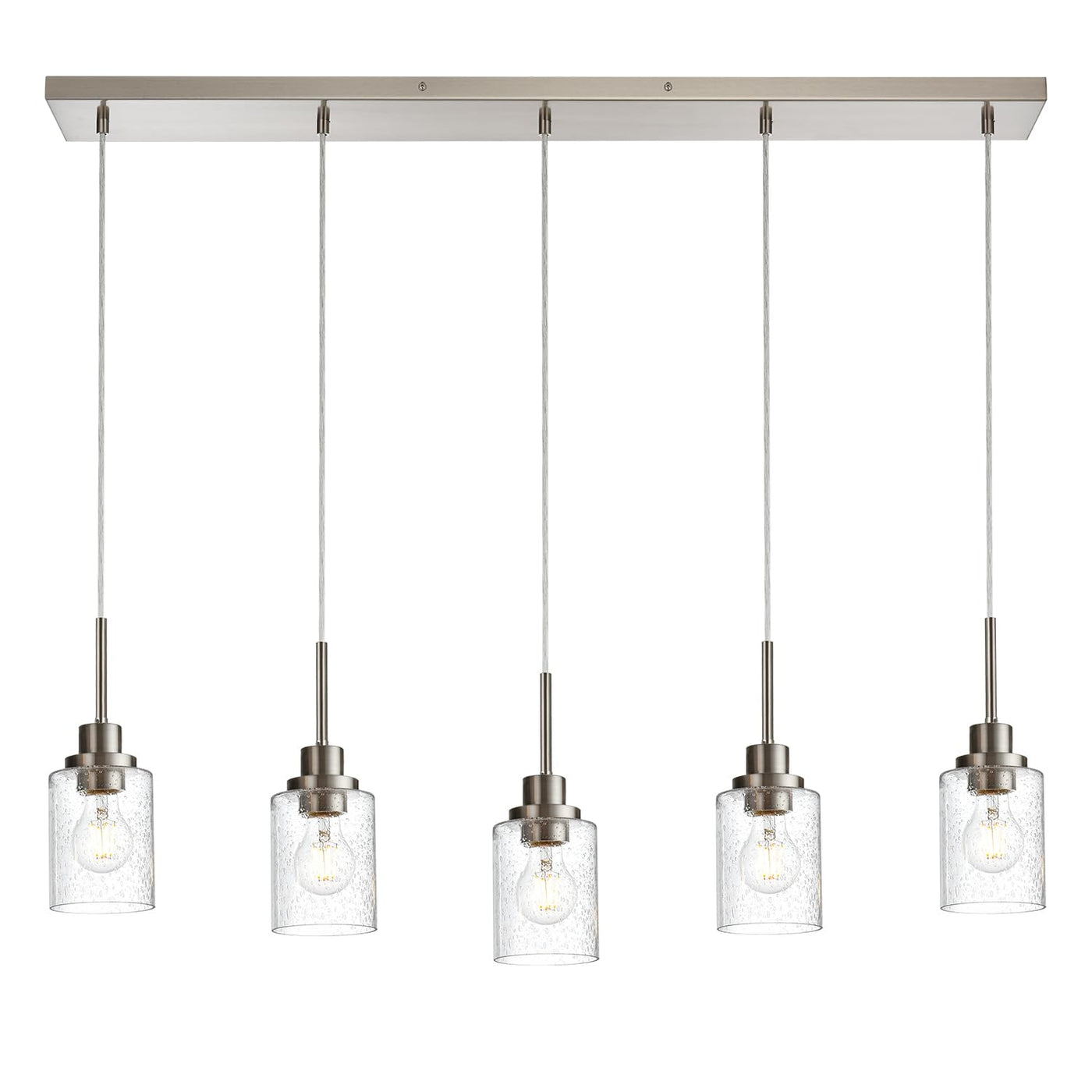 Pendrion Lighting Contemporary Brushed Nickel Linear Chandelier Pendant Light 5 Lights Clear Seeded Glass Farmhouse Pendant Ligh