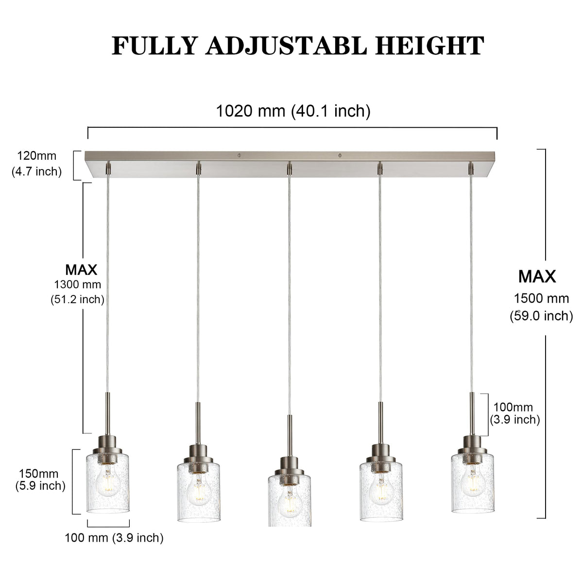Q: Can I adjust the height of the chandelier for different ceiling heights?A: Yes, the PENDRION chandelier features adjustable wires, allowing you to customize the height to perfectly fit your space, making it ideal for dining rooms, kitchen islands, and more.