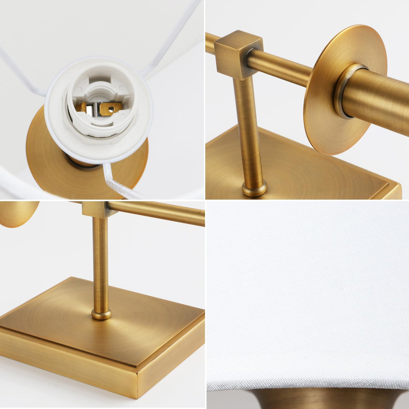 PERMO Set of 2 Classic Rustic Industrial Wall Sconce Lighting Fixture with Flared White Textile Lamp Shade and Antique Brass Tap