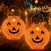 Perpaime 2 Pack Solar Powered Halloween Lanterns - Waterproof Orange Jack-O-Lanterns For Outdoor Decor