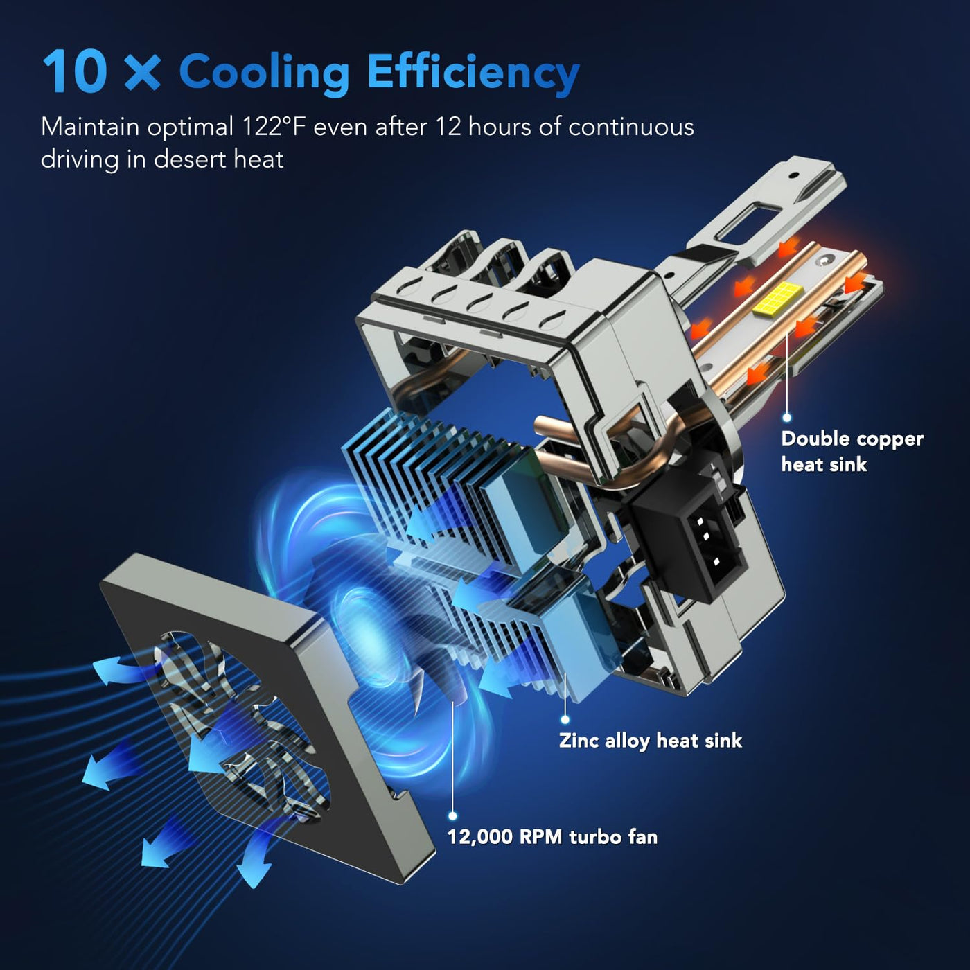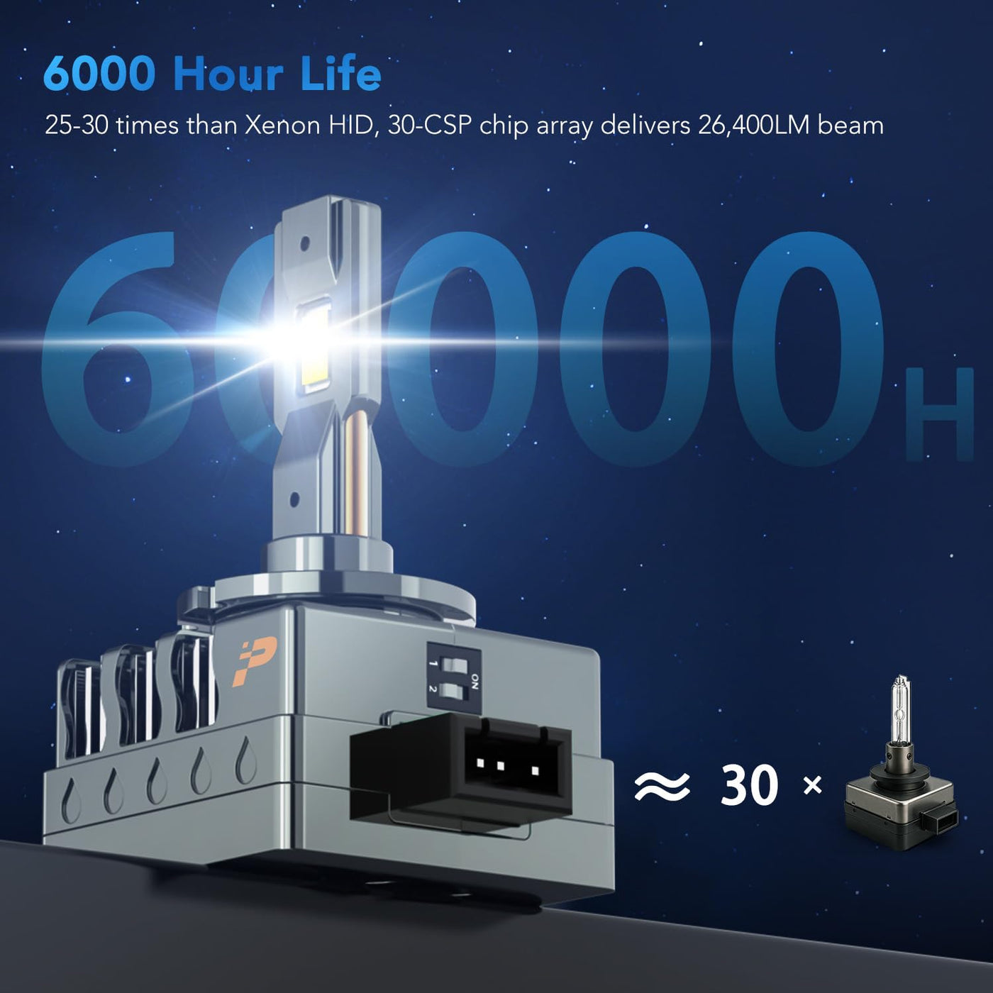PERPOTAO D1S D1R Led Bulb, 46,000LM, 800% Brightness, 6,000K White, 10x Cooling, Xenon HID Replacment, Fast Plug, Compatible 99.