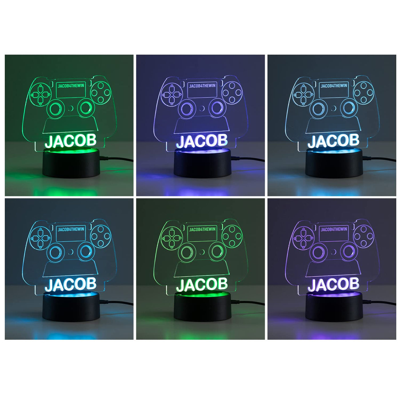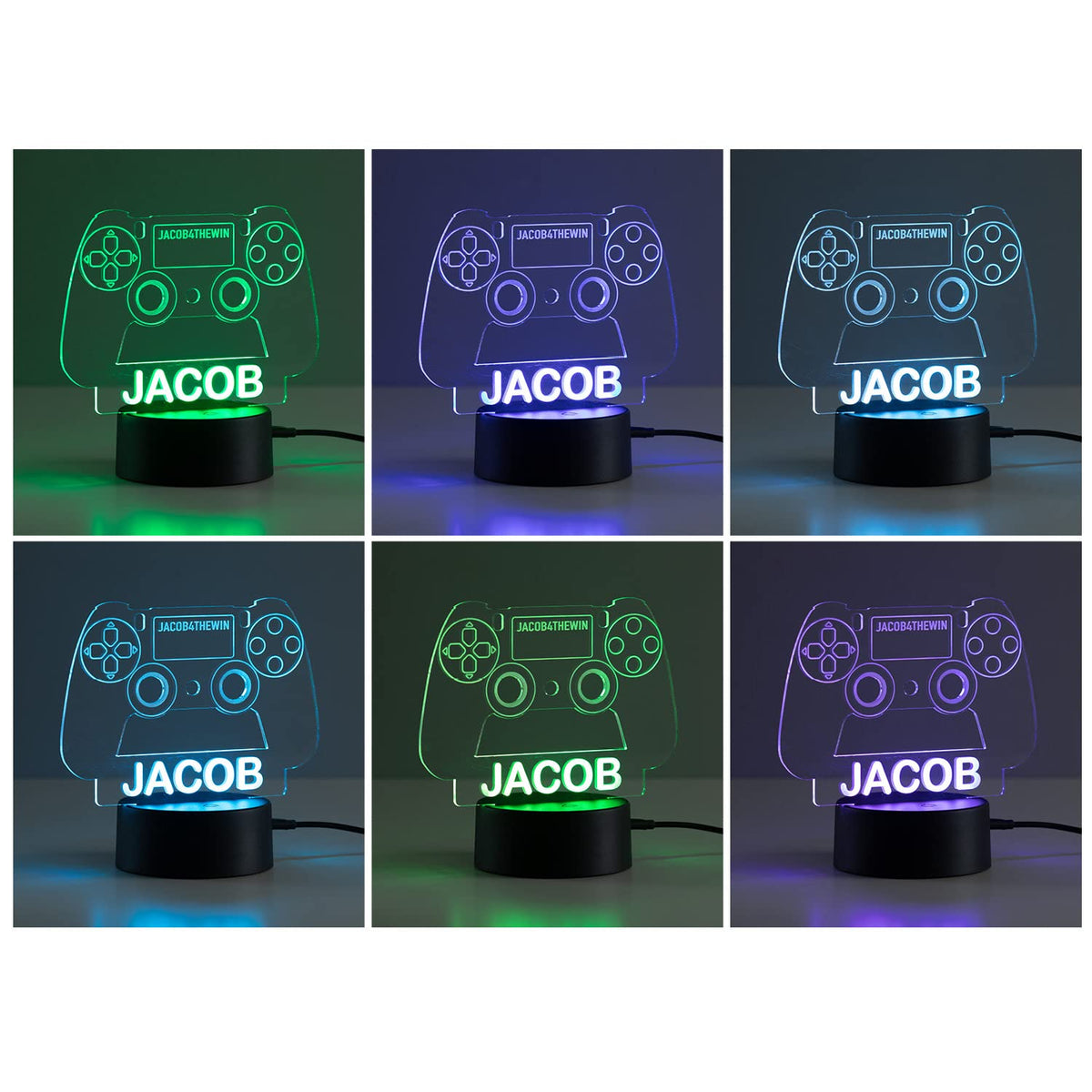 Delight your favorite gamer with this cool nightlight! They will love their name and favorite activity lighting up their bedroom. Makes an awesome birthday of holiday gift! Personalization will appear in all uppercase letters. This LED light has a circular base that projects seven different RGB colors to bring an acrylic 3D design to life. You have the choice to rotate through the different colors or only display one at a time. This light base comes with a USB power cable and has 7 RGB Colors. Light base also runs on 3 AA batteries (not included). Personalized Planet is a leading online retailer specializing in personalized gifts for special occasions, holidays, and celebrations. Our wide selection of customized productions makes excellent gift ideas for birthdays, Christmas, Mother's Day, Father's Day, Grandparent gifts, and more. We also carry a large selection of licensed children's products for popular brands such as Paw Patrol, Peppa Pig, Wild Kratts, JoJo Siwa, Monster Jam, and others. Our officially licensed products are available in products such as kids' beach towels, pillowcases, apparel, backpacks, room d cor, and more. Personalized Planet provides the opportunity to give a truly unique and memorable gift!