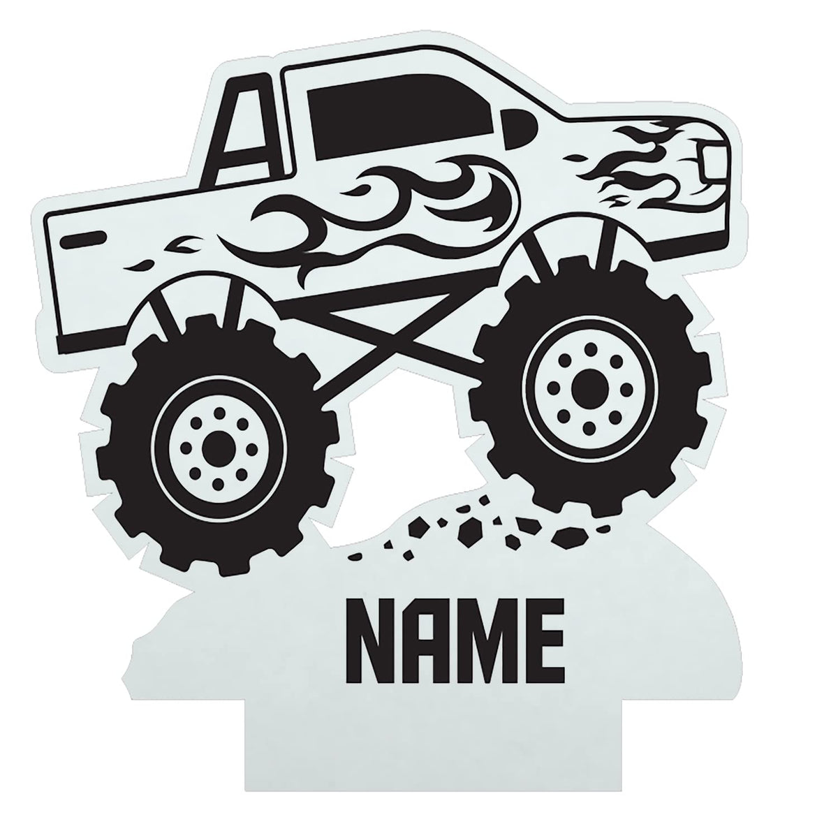 Personalized Planet Monster Truck Multicolor LED Night Light with Custom Name Laser Engraved on Acrylic Design Insert | Base Pro