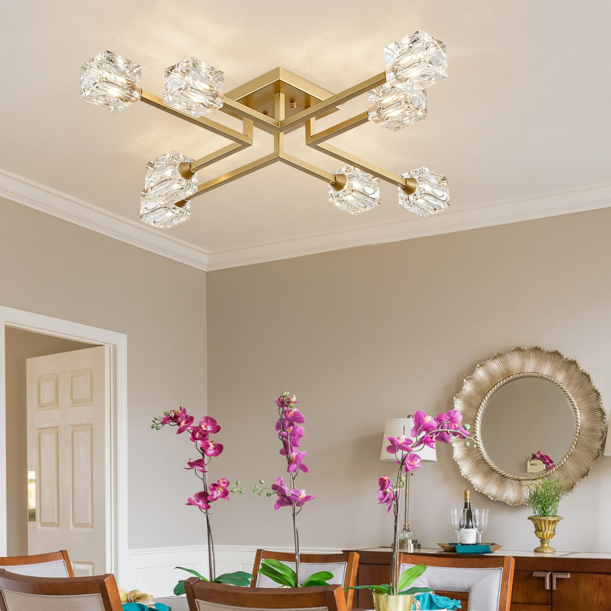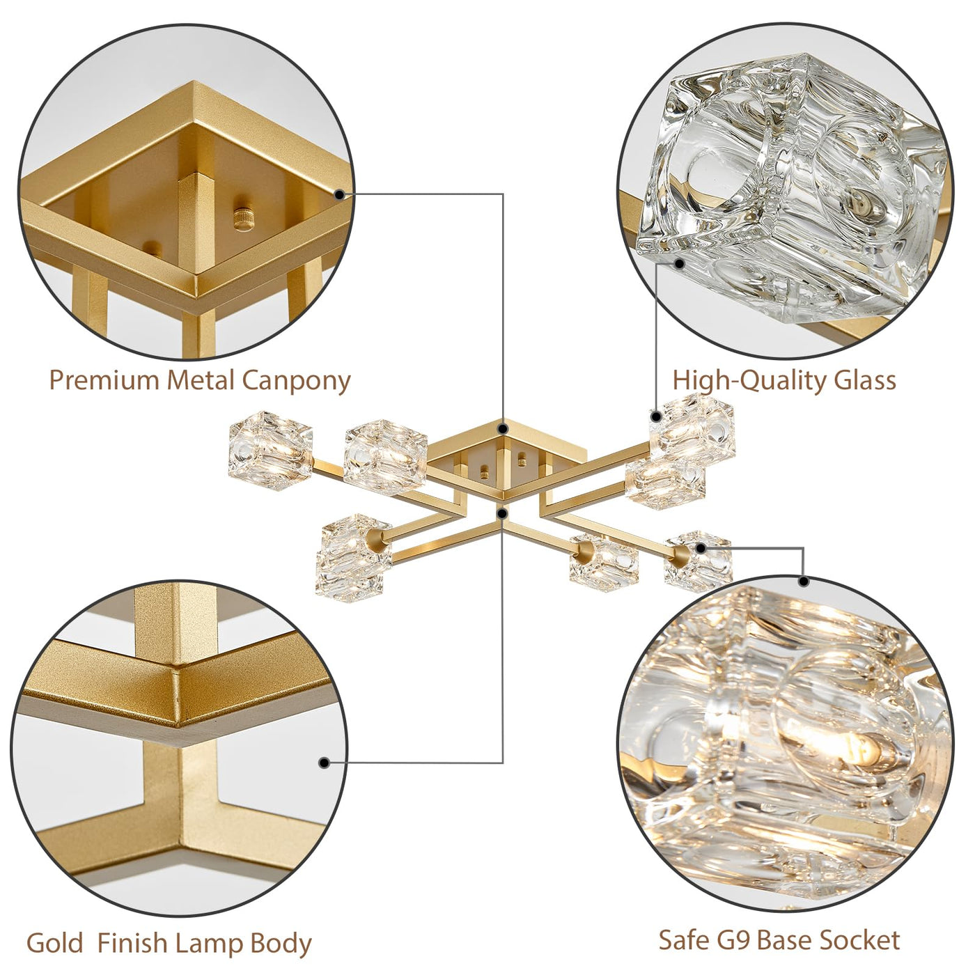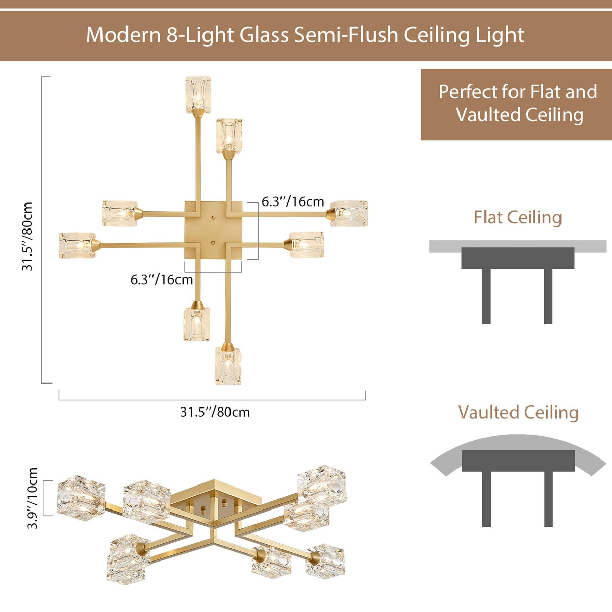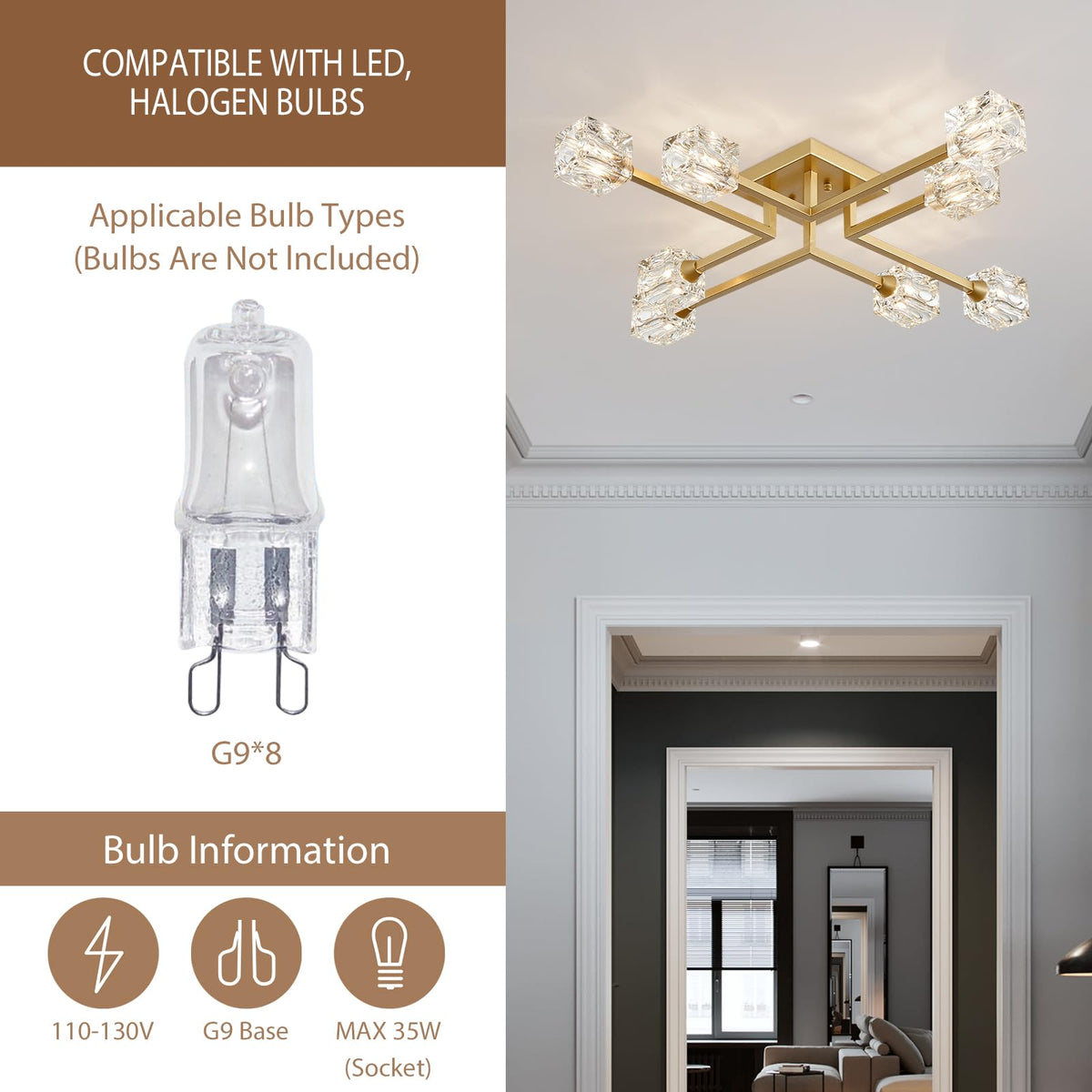 This Contemporary Sputnik Chandelier Features Eight Transparent Glass Shades That Provide Bright, Long-Lasting Illumination While Minimizing Yellowing. The Sturdy Metal Frame Showcases Excellent Craftsmanship, Ensuring Years Of Enjoyment. With A Matte Gold Semi-Flush Mount Design, It Accommodates Up To Eight 35W G9 Base Bulbs, Working With Dimmable Options And Dimmer Switches (Bulbs And Switches Not Included), Allowing You To Set The Right Ambiance In Any Room. Its Versatile Design Makes It Suitable For Various Spaces Including Dining Rooms, Living Rooms, Kitchens, Hallways, Bedrooms, Staircases, Foyers, Bars, Entryways, And Offices. The Sophisticated Matte Gold Finish Enhances Any Interior Style, Adding A Welcoming Touch To Your Decor. Installation Is Straightforward, With All Necessary Components And Easy-To-Follow Instructions Included For Quick Setup. Every Chandelier Undergoes Stringent Quality Control To Ensure A Satisfying Purchase Experience. Should You Have Any Questions Or Concerns, Our Dedicated Customer Support Team Is Ready To Assist You, Responding Promptly Within 24 Hours.