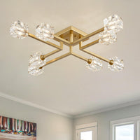 Peskoe 8-Light Gold Sputnik Chandelier Semi Flush Mount Ceiling Light Fixture, Modern Farmhouse Chandeliers For Dining Room Bedr
