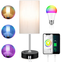 Peteme Smart Rgb Led Bedroom Lamp, Dimmable Table Light With Usb Ports, Works With Alexa