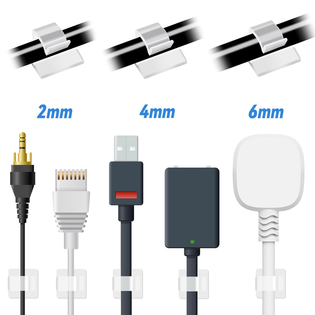 Q: What is the maximum wire width that these clips can hold?A: These cable clips are designed to accommodate wires with a width of up to 6 mm, making them suitable for various types of cables including USB wires, mobile phone chargers, and power cords.